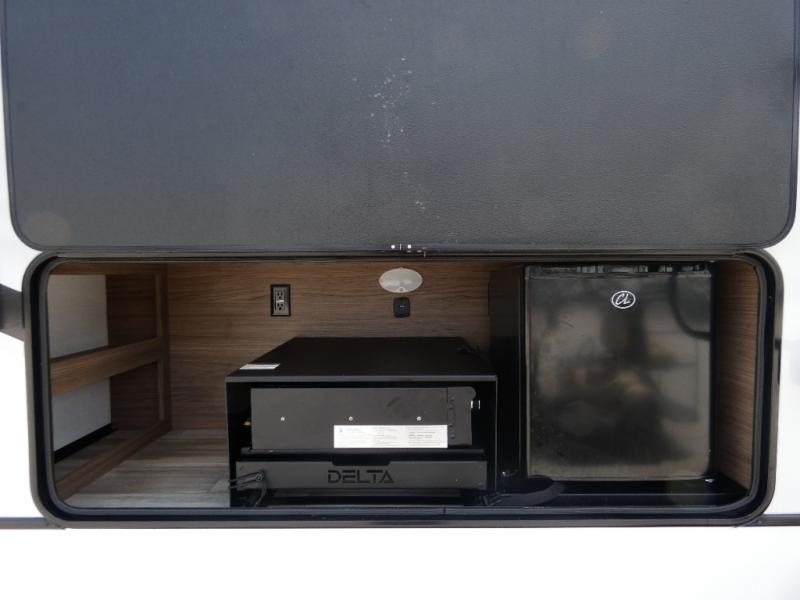Form and function works together with every one of these Alliance RV Delta travel trailers! They are built with a walk-on roof with a seamless PVC roof covering, Mylar reinforced exterior seals, and a heated and enclosed underbelly to protect your unit in all seasons. The commercial grade vinyl flooring will be easy to clean and the oversized atrium windows throughout let in plenty of natural sunlight. With 62 cu. ft. of drop frame pass-through storage, you can bring along all of your essential camping gear plus it has USB charging for more convenience. There are many at home interior conveniences including a Bluetooth speaker, USB charging throughout, and even a pull-out kitchen trash can. Come find your favorite model today!