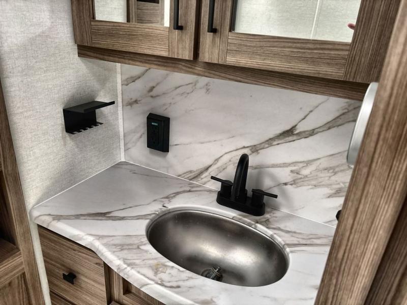 Form and function works together with every one of these Alliance RV Delta travel trailers! They are built with a walk-on roof with a seamless PVC roof covering, Mylar reinforced exterior seals, and a heated and enclosed underbelly to protect your unit in all seasons. The commercial grade vinyl flooring will be easy to clean and the oversized atrium windows throughout let in plenty of natural sunlight. With 62 cu. ft. of drop frame pass-through storage, you can bring along all of your essential camping gear plus it has USB charging for more convenience. There are many at home interior conveniences including a Bluetooth speaker, USB charging throughout, and even a pull-out kitchen trash can. Come find your favorite model today!