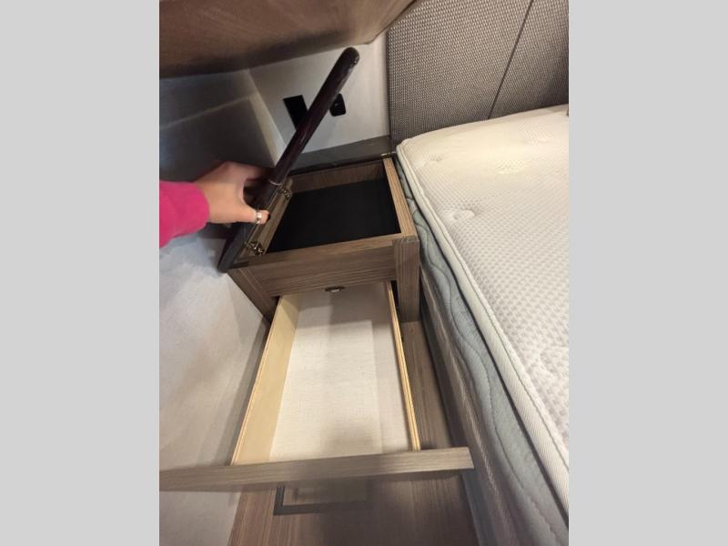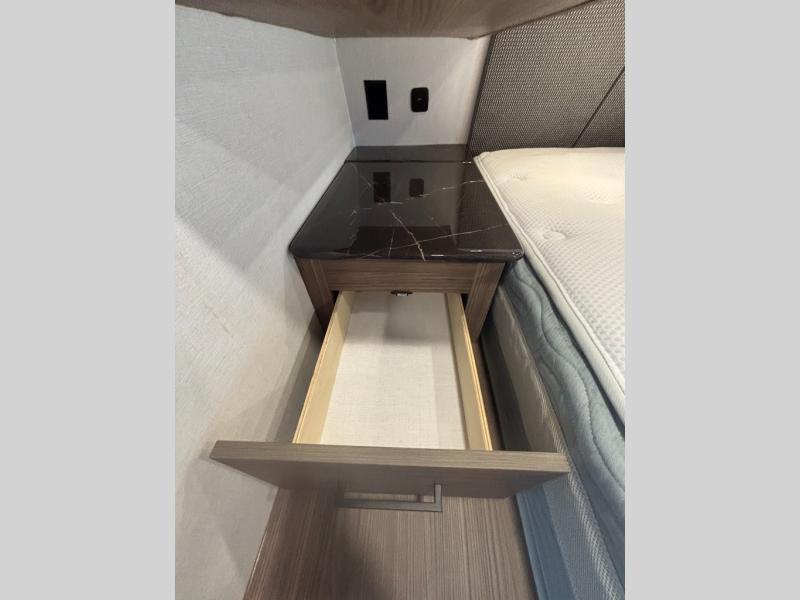 Form and function works together with every one of these Alliance RV Delta travel trailers! They are built with a walk-on roof with a seamless PVC roof covering, Mylar reinforced exterior seals, and a heated and enclosed underbelly to protect your unit in all seasons. The commercial grade vinyl flooring will be easy to clean and the oversized atrium windows throughout let in plenty of natural sunlight. With 62 cu. ft. of drop frame pass-through storage, you can bring along all of your essential camping gear plus it has USB charging for more convenience. There are many at home interior conveniences including a Bluetooth speaker, USB charging throughout, and even a pull-out kitchen trash can. Come find your favorite model today!