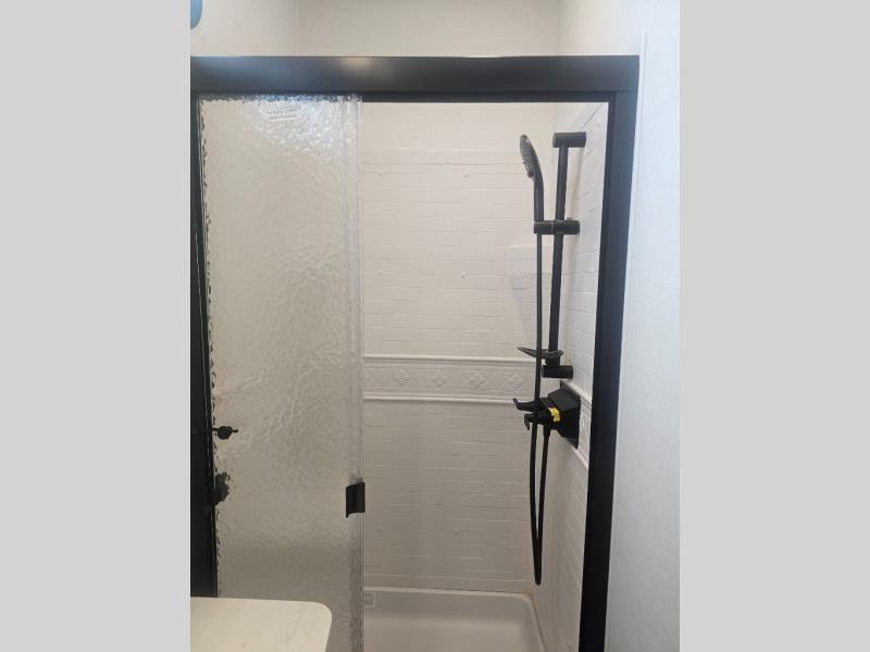 A spacious unit with sleeping for eight with plenty of choices to suit everyone! There is a front private bedroom with a king size bed that offers a large full front closet that has also been prepped for a washer and dryer if you choose that option. The front bath features a 40" x 30" shower and dual entry. Head down to the kitchen and living space at the bottom of the stairs to find a curbside slide that houses the 19 cu. ft. residential refrigerator, a pantry, and a dinette with four chairs. As you continue on toward the rear of this coach, you will find a spacious living area along the roadside with a 50" Smart TV and a fireplace, a sofa sleeper slide, and a dual reclining loveseat. This makes a great gathering place for television watching, game playing, and even added sleeping space if needed at night. The rear private bedroom with its own private bath features a queen bed, two closets, and a Smart TV as well. The multipurpose loft area above can be accessed just before this rear bedroom entry by a ladder, and it is perfect for extra storage, or it can be used for added sleeping that the kiddos are sure to love.