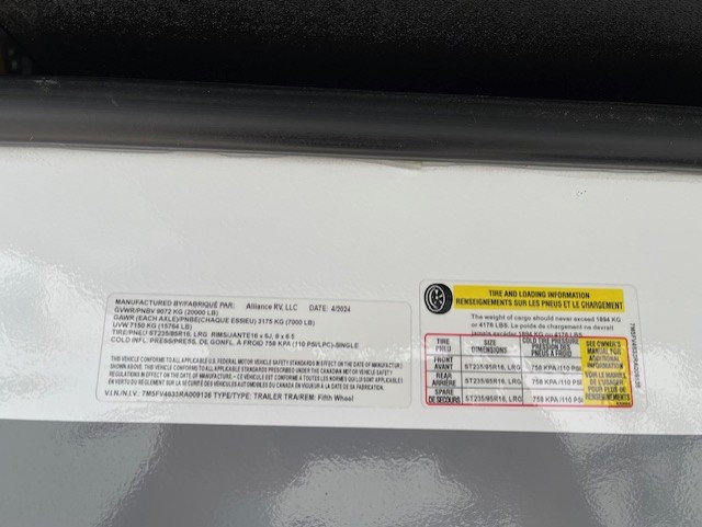 | Awning Info | Oversized Main, Rear |