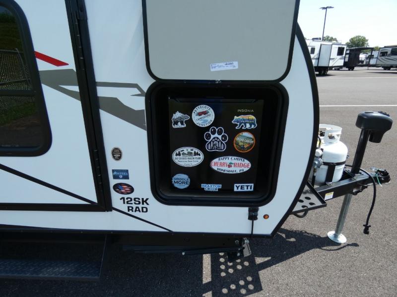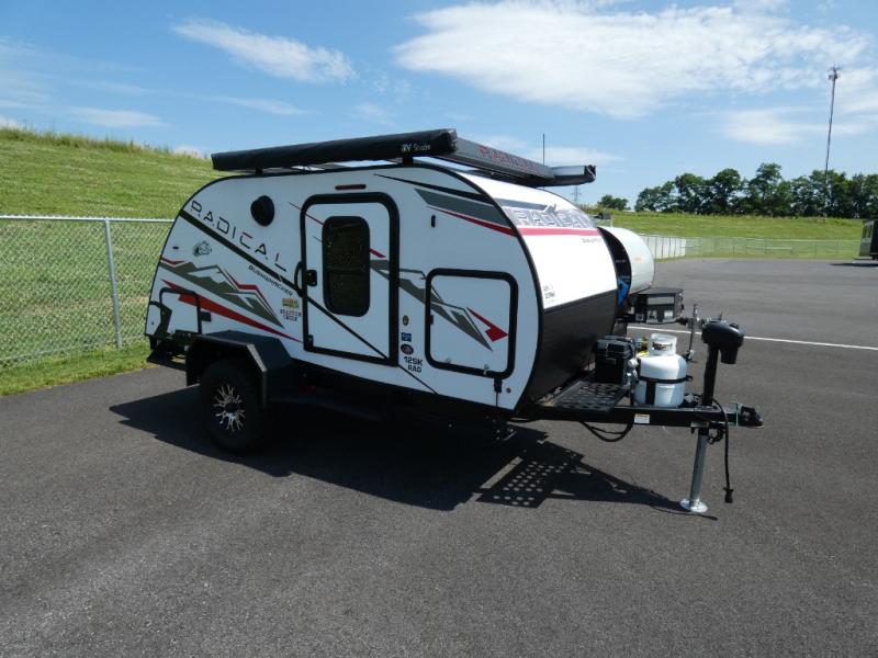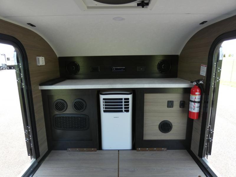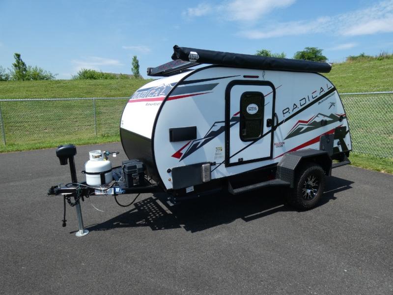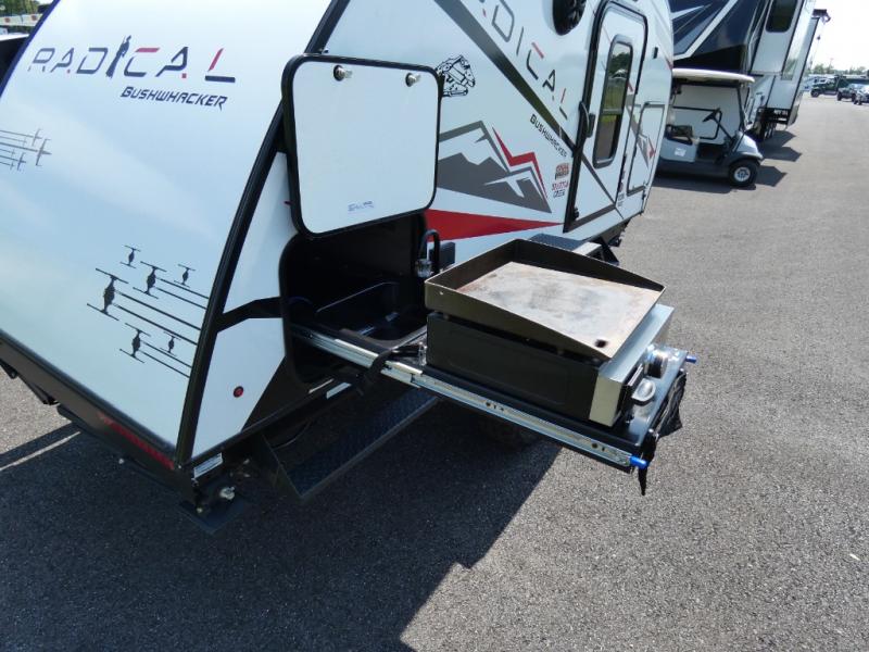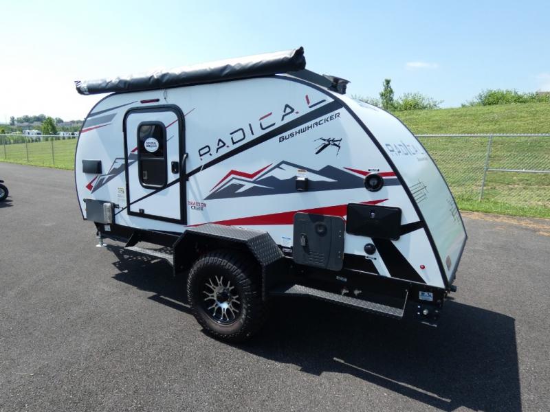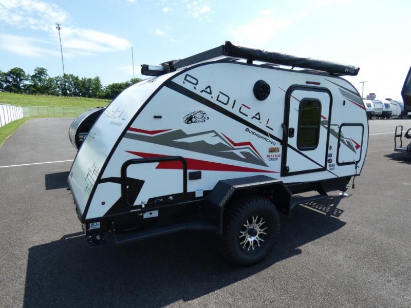 You can forge your own path with any one of these Braxton Creek Bushwhacker teardrop trailers! You will find that each feature a welded aluminum frame construction with high-density insulation, dual rear heavy-duty extendable BAL stabilizer jacks, and a Norco stamped, heavy-gauge steel, powder-coated mainframe with EZ-extend hitch jack to hold up through any adventure. On the inside, a Kenwood AM/FM Bluetooth and Alexa compatible stereo with interior and exterior speakers, an AC unit and a high capacity attic fan to keep you cool on hot summer days. The Go-Power solar prep package, USB ports, and TV prep will provide you with all that you need for added convenience while you camp. With the Radical option you will get a Norco 3,000 lb. high clearance and independent suspension axle with shock absorbers and electric brakes that allow you to go further into the woods. The Radical package comes with a bright white fiberglass exterior with Radical graphics that are sure to turn heads, the roof tent has a compatible roof rack, and the J-cube adds comfort!