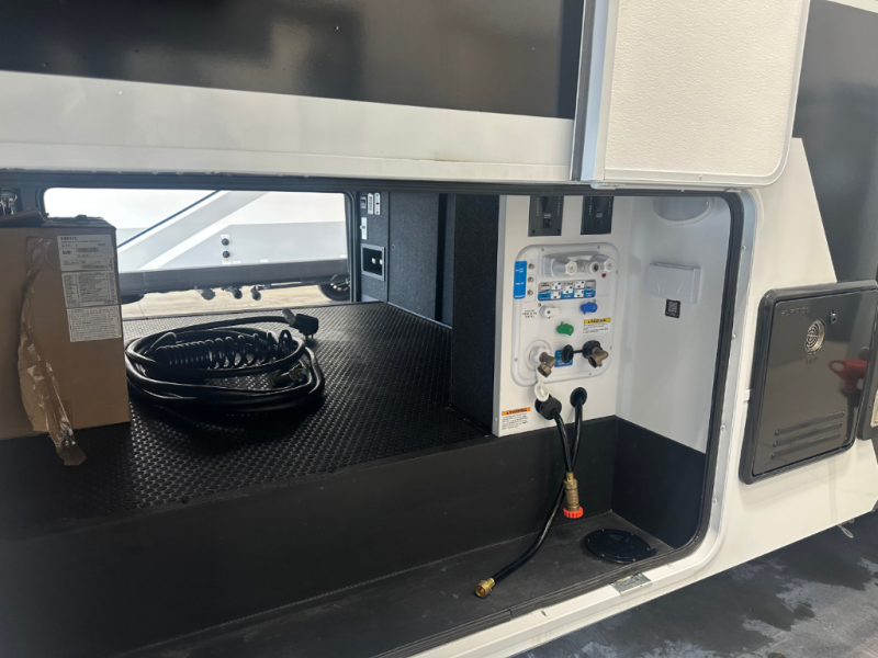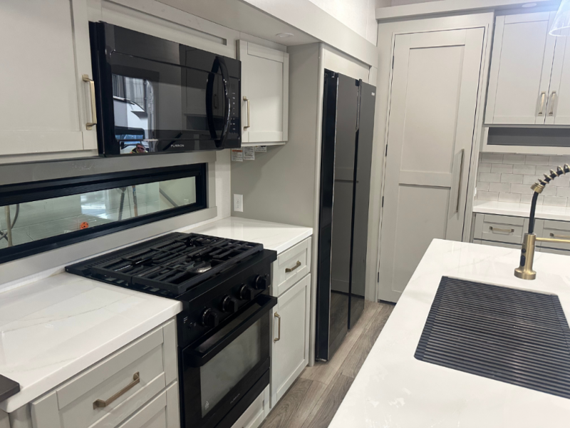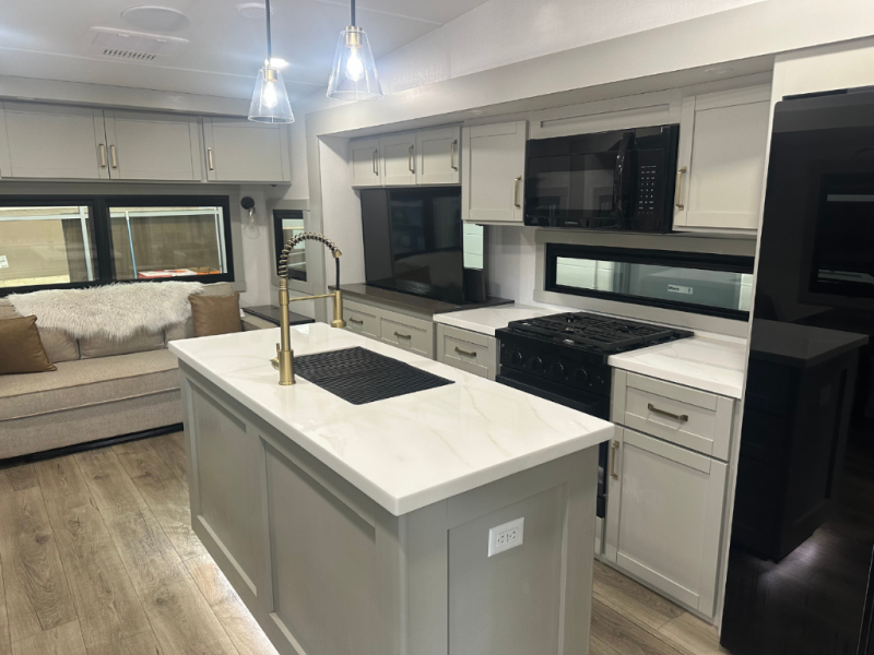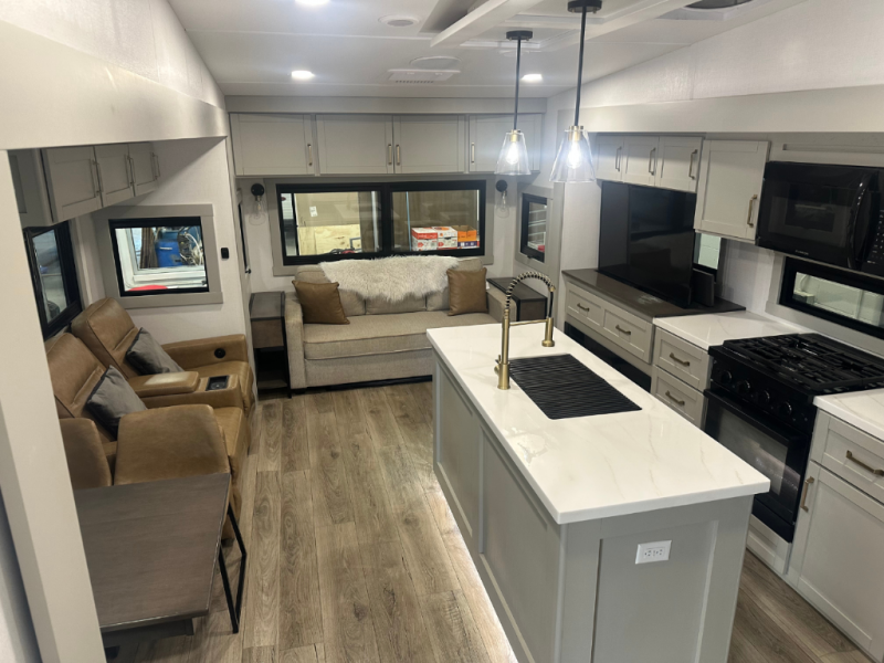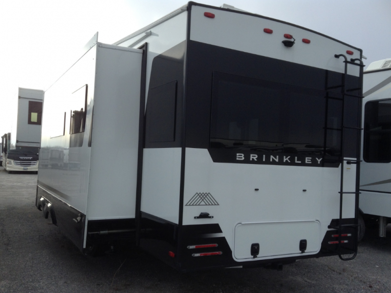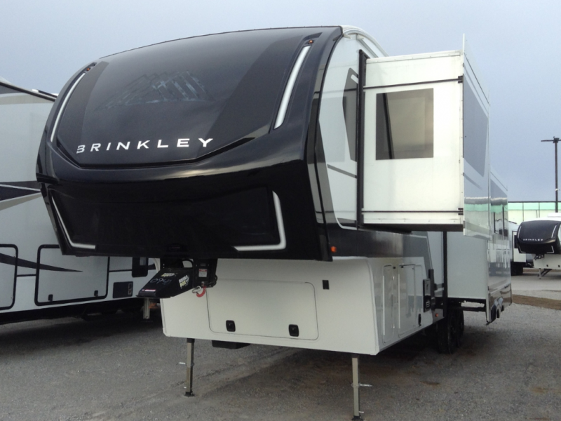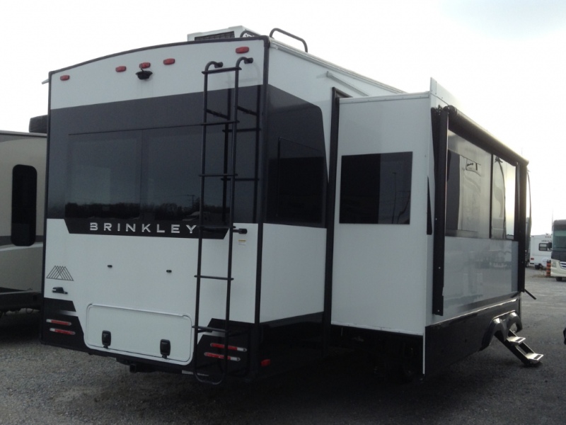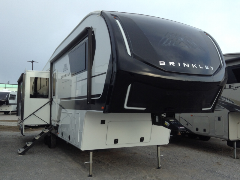 The Brinkley mid-profile Model Z fifth wheels bring you clean lines and an upscale look with plenty of style and exciting new features like the industry first brass plumbing connections. These units also feature an automotive grade front cap, plenty of exterior storage, dual exterior hot and cold showers, and wide stance leveling jacks for easy set up. Residential frameless windows provide a clean look and beautiful views, and ample electrical outlets and 6 USB/USB-C outlets allow all of your electronics and appliances to easily be used and charged.