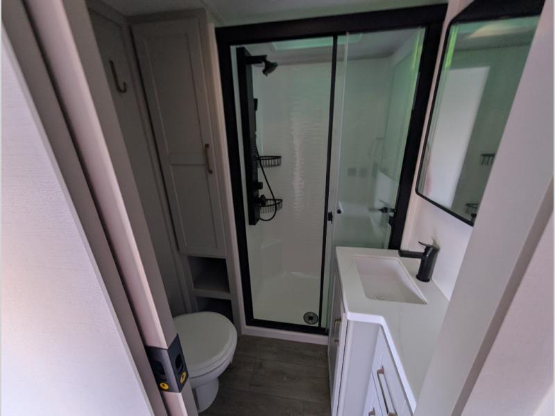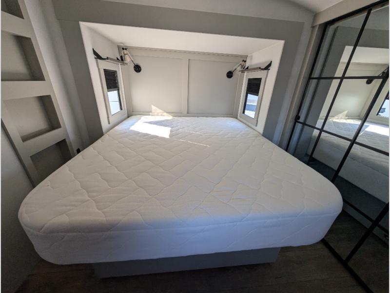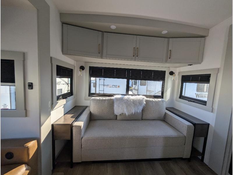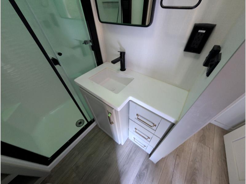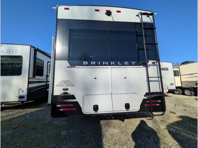 The Brinkley mid-profile Model Z fifth wheels bring you clean lines and an upscale look with plenty of style and exciting new features like the industry first brass plumbing connections. These units also feature an automotive grade front cap, plenty of exterior storage, dual exterior hot and cold showers, and wide stance leveling jacks for easy set up. Residential frameless windows provide a clean look and beautiful views, and ample electrical outlets and 6 USB/USB-C outlets allow all of your electronics and appliances to easily be used and charged.