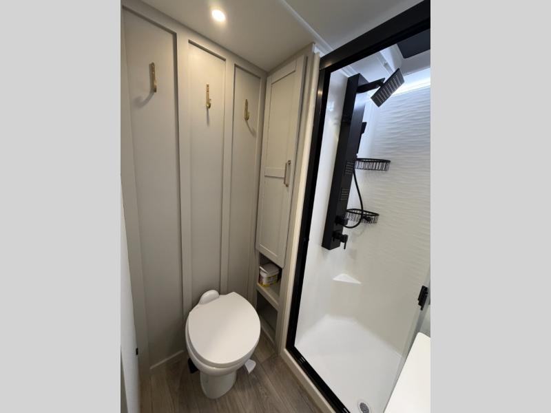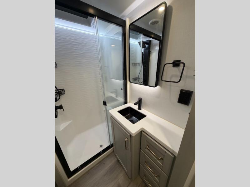 The Brinkley mid-profile Model Z fifth wheels bring you clean lines and an upscale look with plenty of style and exciting new features like the industry first brass plumbing connections. These units also feature an automotive grade front cap, plenty of exterior storage, dual exterior hot and cold showers, and wide stance leveling jacks for easy set up. Residential frameless windows provide a clean look and beautiful views, and ample electrical outlets and 6 USB/USB-C outlets allow all of your electronics and appliances to easily be used and charged.