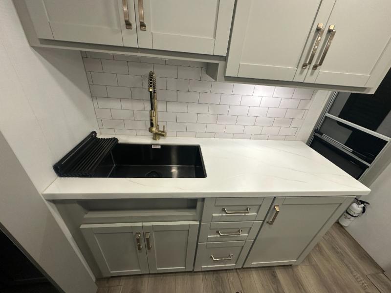 With any Model Z Air travel trailer by Brinkley, you will enjoy premium features at every turn. The industry-first low maintenance roof is sure to be appreciated, plus there are industry-first brass plumbing connections for excellent resistance to corrosion. The drop-frame chassis with over 100 cu. ft. of exterior storage will allow you to bring along camp gear galore, plus there are motion lighting and power outlets for added convenience! You'll also find two hot/cold showers outdoors, along with a 370-watt solar panel, a custom LP box with locked battery storage, and a premium utility center with a retractable 65' water hose to wash off mud from the lake. The interior is just as accommodating with its solid surface countertops, Brinkley CraftSense wood trim construction, integrated window screens and insulated blackout blinds, and the list of luxury features goes on!