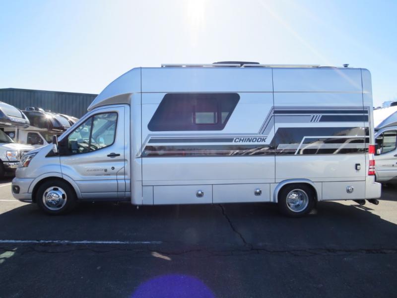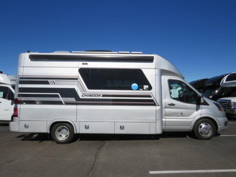 Built on the Ford Transit chassis with a 3.5L V6 engine and AWD, the Chinook Maverick is perfect for all your needs. Its compact size means it is easy to maneuver and park, but indoors you will find everything you need in a home away from home. Your power needs will be taken care of with the 2 6v. Group 27 AGM House Batteries plus the 400-watt capacity solar panels. A Truma Combi-Plus heater system with integrated water heater keeps you warm plus there is a 15,000 BTU air conditioner for those hot summer days.