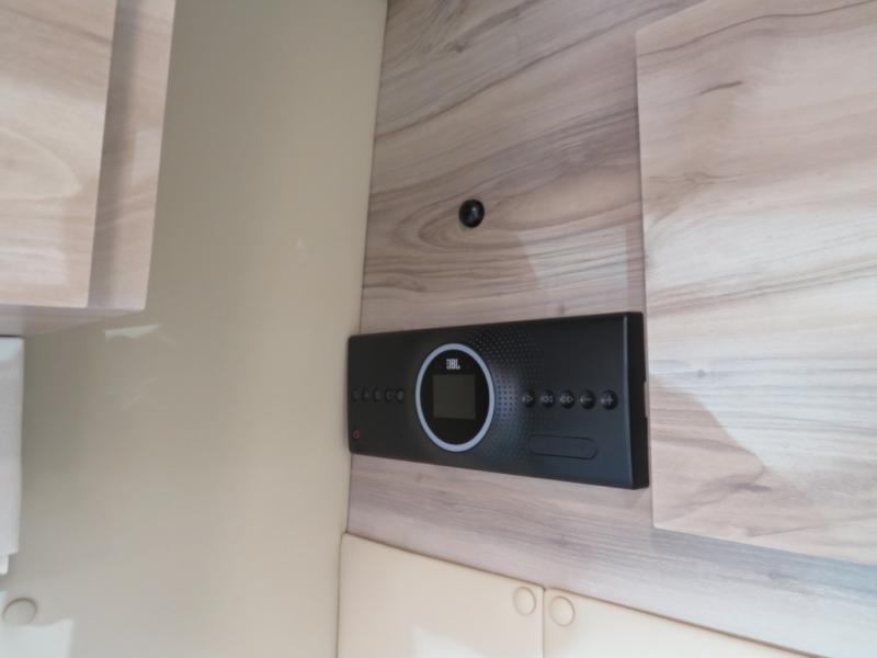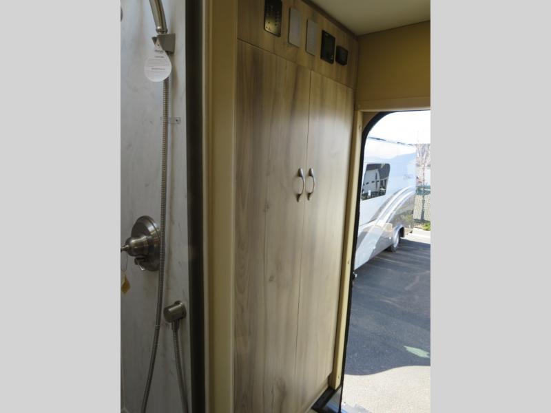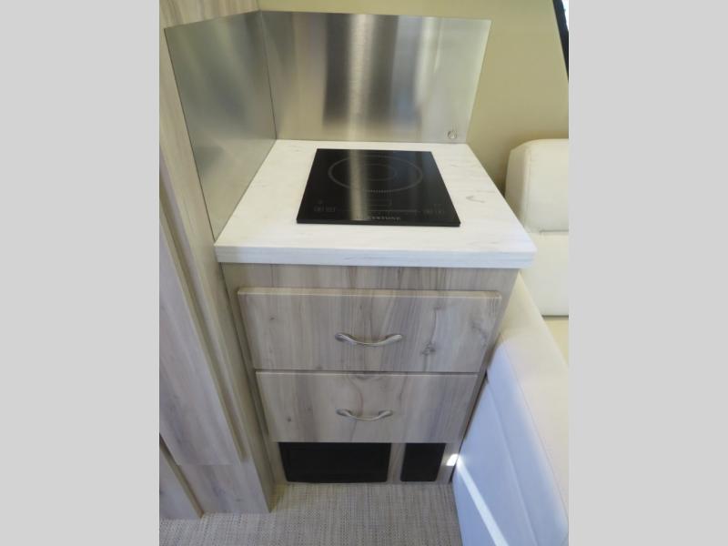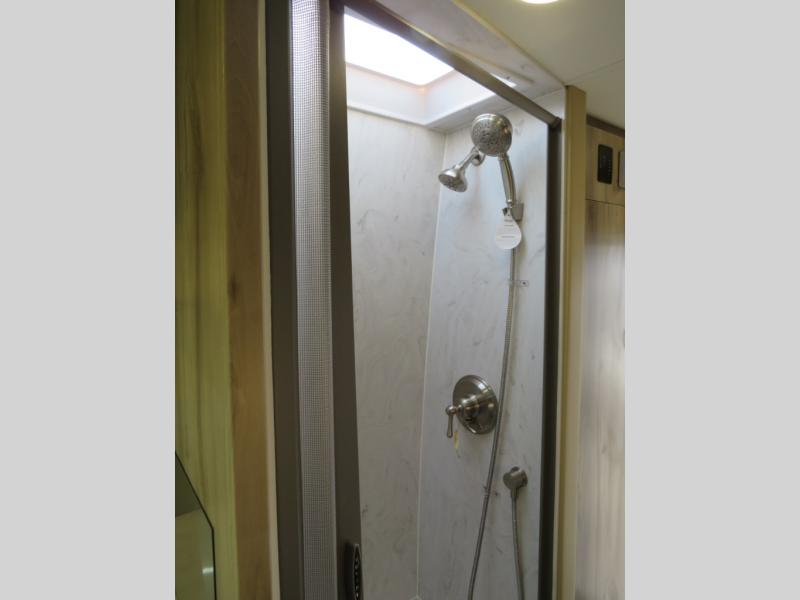 You will love the Maverick DS inside and out. You will sleep in roomy luxury on a 76" x 84" king bed. During the day, change the bed back into dual sofas for a sweet living area. The entertainment package is standard and includes a 32" Samsung TV, JBL by Harman Aura in-wall media center with JBL sub-woofer & 6.5" Coaxial ceiling speakers. There are several choices for media including FM, HDMI in and out, Bluetooth, aux, and USB. You'll also appreciate the rear bath with shower and the kitchen with refrigerator, microwave, and induction cooktop.