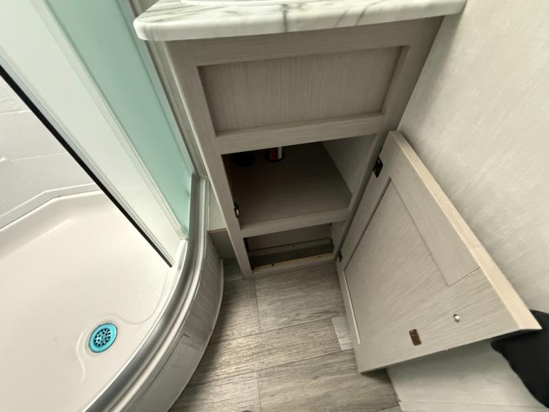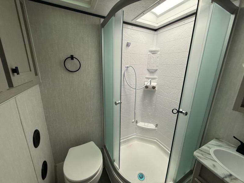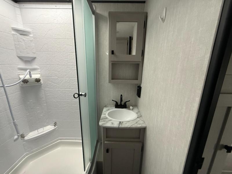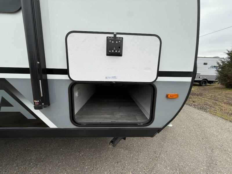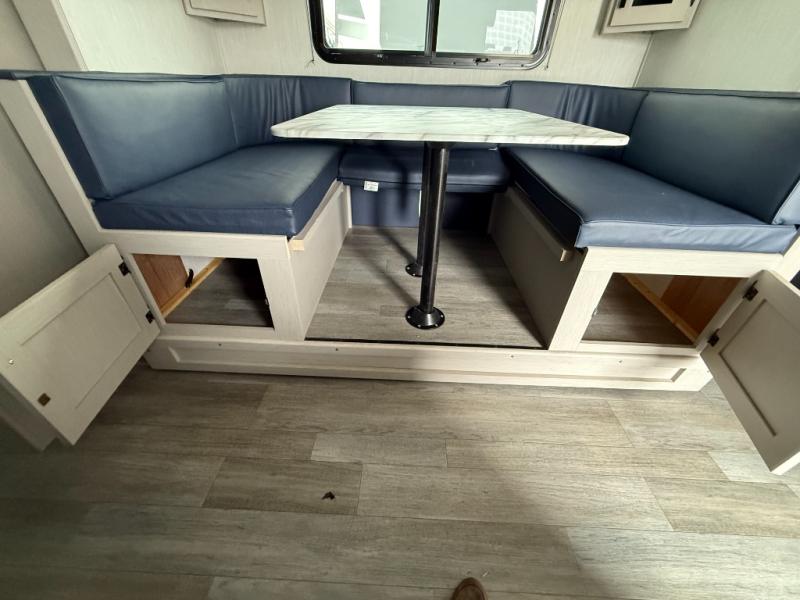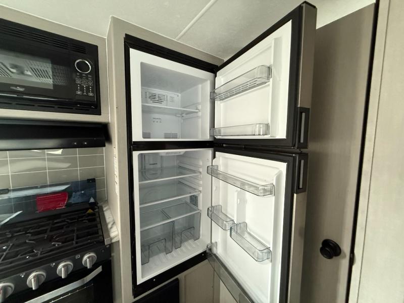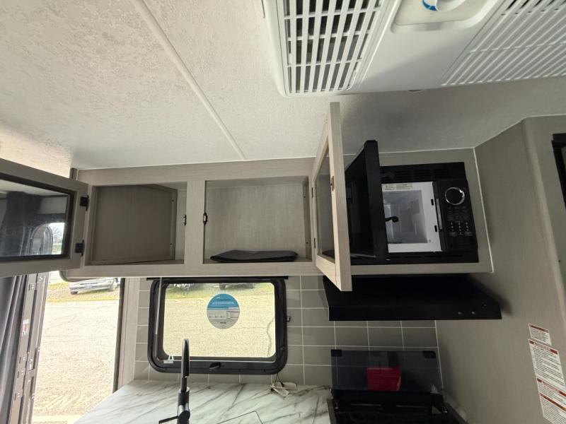 Easy to tow so you can get up and go! The U-shaped dinette slide will not only be a favorite spot to dine and play games, but will also double as additional sleeping space. There is a full interior kitchen, plus an outdoor kitchen that is perfect for breakfast outdoors. When you're ready to come in for the night, head to the spacious full rear bath to clean up, and the front bedroom will make this unit feel more like home with its queen bed and dual wardrobes!