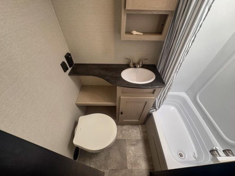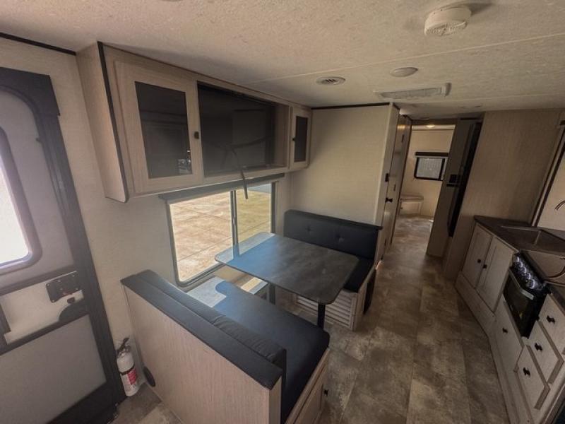 What I liked most: Kitchen counter has a large amount of space. Entertainment Center has lots of storage. Dining booth has one storage cabinet. Kitchen area has plenty of storage. Bunkhouse has plenty of storage with 2 large cabinets, 1 small cabinet and 3 drawers.