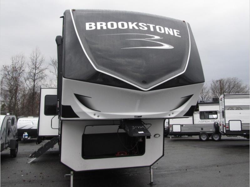 The Brookstone fifth wheels by Coachmen are coming to you with wide-body comfort, home-like amenities, and unique designs for a truly luxurious RV. The Weather Shield+ consists of a 6X double Azdel aluminum cage sidewall system, a Radiant Pro weather barrier system, and more that will help you extend your camping season or go full-time. Head inside to find solid surface countertops in the kitchen, an XL HD LED TV in the living room, slow rise roller night shades, and the list of comforts goes on! The Brookstone also includes 6-point electric auto-leveling, four Solid Step entry steps, an electric awning with LED lights, and many more exterior conveniences!