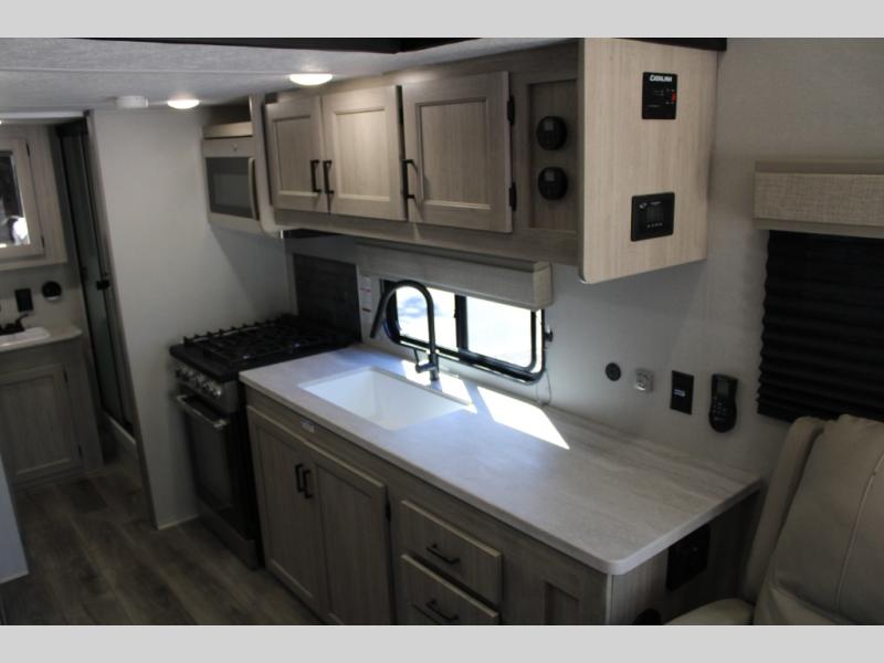 Built with families in mind, the Catalina Destination Series offers generous living space, private sleeping areas, and smart storage throughout. Large panoramic windows bring in natural light, while the open-concept layout creates a welcoming environment for shared meals, movie nights, and slow mornings together. Whether you’re setting up at your favorite seasonal site or creating a home-away-from-home for the whole crew, this model delivers the flexibility and comfort families appreciate.
