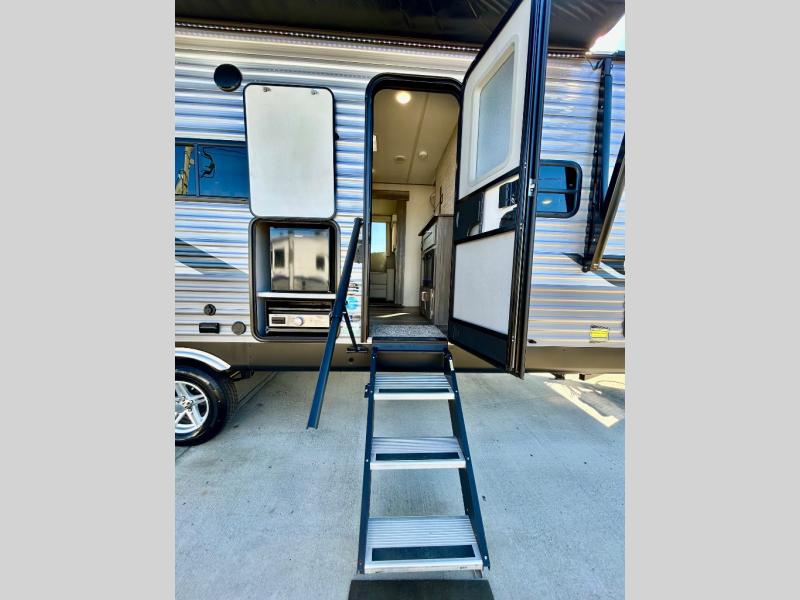COUPLES CAMPER - QUEEN BED - REAR BATH - BAL 5.3 AUTO LEVELING - FULL SOLAR PACKAGE - OUTDOOR KITCHEN W/GRIDDLE - REAR CARGO CARRIER - FIREPLACE -