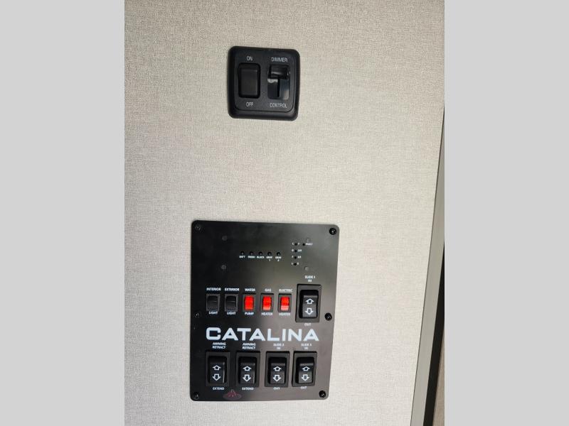 Each Catalina Legacy travel trailer by Coachmen is constructed with a cambered structural steel I-beam frame for added strength and support, plus an enclosed and fully sealed corrugated underbelly to extend your camping season. There is also a seamless Alpha room membrane, R-7 insulation throughout, full length frame outriggers, plus many more durable construction materials. You will love the 6' 9" interior height, along with Congoleum woodplank linoleum flooring, seamless Thermofoil countertops, and hard valance window treatments. There is an RV-Link 4G LTE connectivity with WiFi booster and an extender to keep you connected to the outside world as you camp, and the JBL Aura cube multi-zone function media center is sure to keep you entertained all weekend long. Choose a Catalina Legacy today!