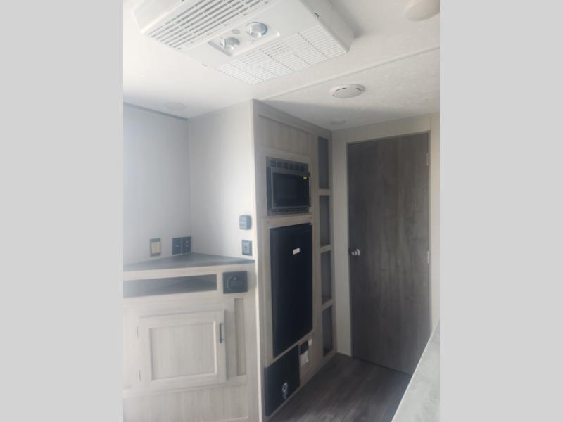 Camping for two, anyone? This cute Catalina Summit Series 7 is the perfect camper that provides you with both a living space and a sleeping space all while keeping it under 20'. This unit comes in at 19' 6" to be exact, and with the 60" x 74" Murphy bed layout you can have both a comfortable place to sleep at night, and seating space on the sofa during the day. A rear bath offers a 36" x 30" shower, toilet, and linen cabinet for your towels and toiletries. The sink is just outside the bathroom door on your left. For cooking inside, you will have a GE two burner cooktop and a GE stainless microwave oven, plus plenty of solid surface countertop prep space. On the outside, a 10' power awning with a multicolored LED light strip will make a wonderful outdoor living space to enjoy both during the day and at night keeping you protected from the elements. And the large front pass-through storage space allows you to take along all of your necessities to have a great time.
