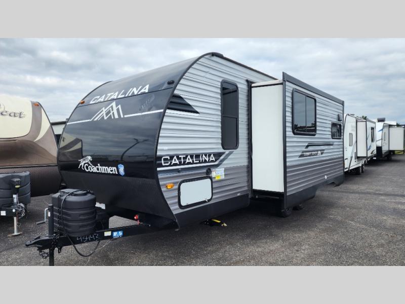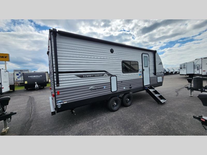 With any Catalina Summit Series 8 by Coachmen you will enjoy an affordable travel trailer packed with at-home comforts! The solid construction includes a Norco electromagnetic powder coated chassis, a seamless Alpha roof membrane, and full length frame outriggers for maximum support and durability. Dexter EZ lube axles with leaf spring suspension and self adjusting brakes provide smooth towing from home to campground, and the premium exterior graphics package is sure to turn heads as you travel down the highway. You will love the features included, such as a JBL Aura Cube media center, magnetic baggage door latches, 4,000 lumen interior touch lighting, LCI One Control, and the list goes on!