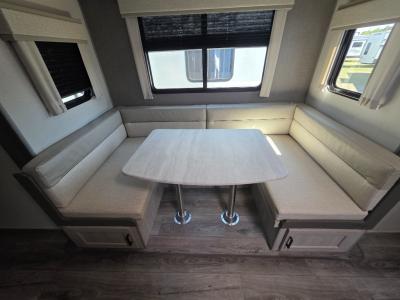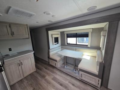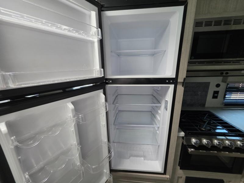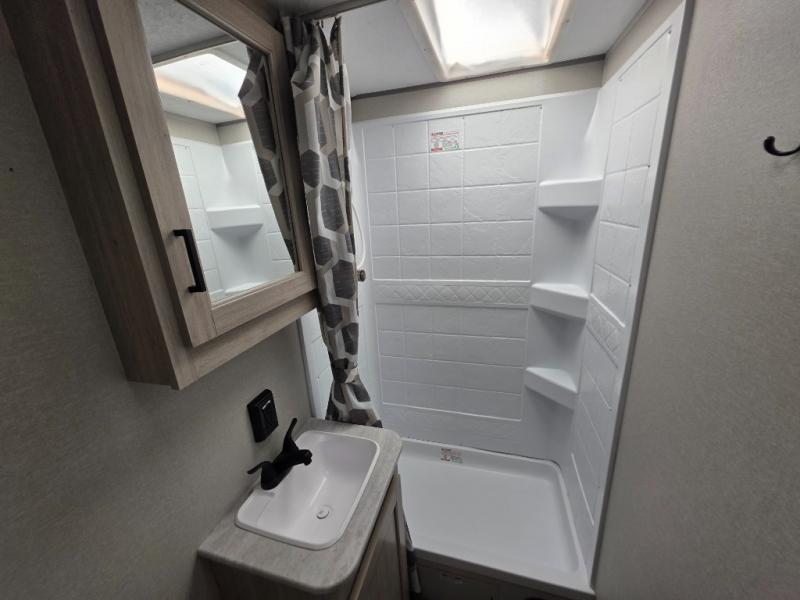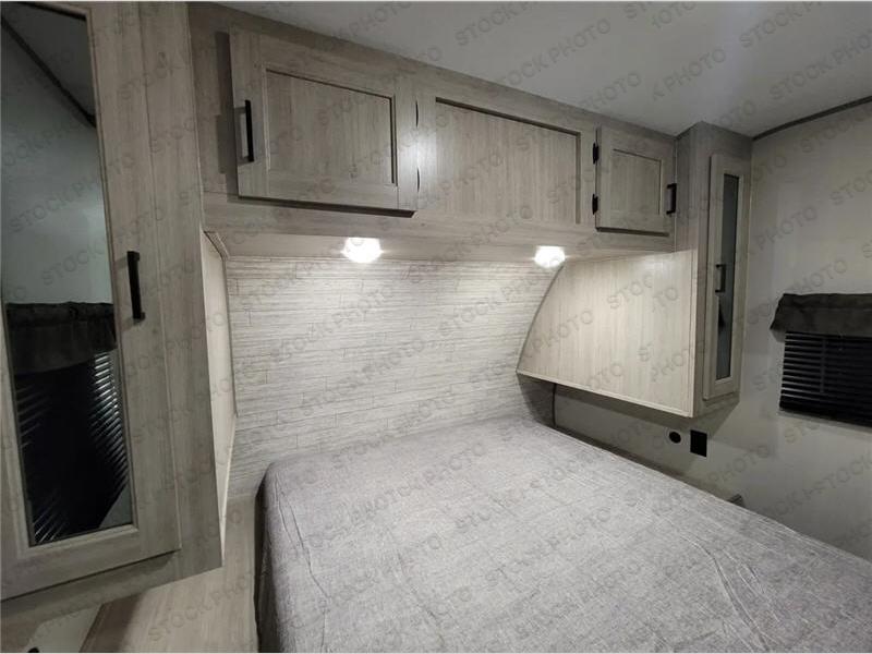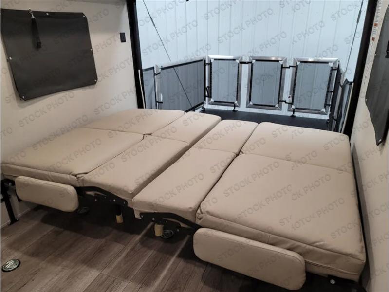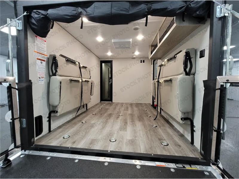 You're going to love camping in this dual entry toy hauler! The 11' garage can be shut off from the rest of the unit if your guests want a little privacy, and you can choose the optional party deck to the ramp door for more living space. The full bath includes a tub/shower, a medicine cabinet, plus a shower skylight to let natural light in. Head to the main living area to dine around the U-shaped dinette slide, or call it a night in the front bedroom with a queen bed. And you'll find plenty of storage space for your belongings, including overhead cabinets, dual bedroom wardrobes, plus exterior storage!