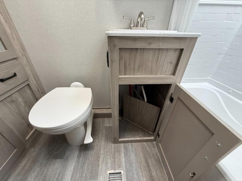 Two Full Bathrooms: One in the bunkhouse, one in the main/living or near bedroom area.