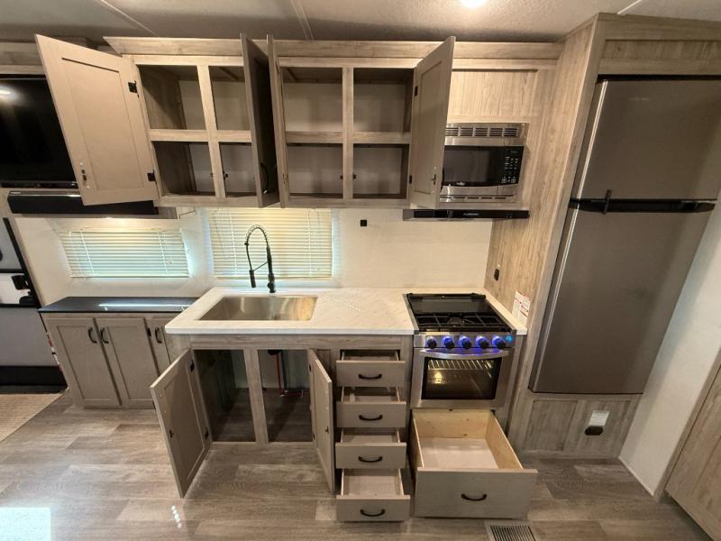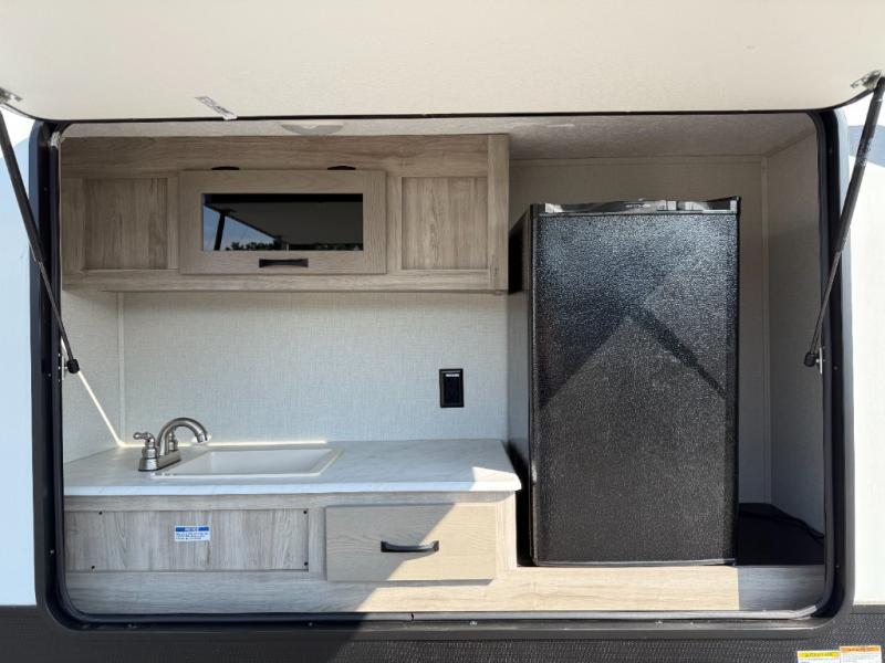 Outside Kitchen, Tri-Fold Sofa, Two Full Baths, Rear Bunkhouse.