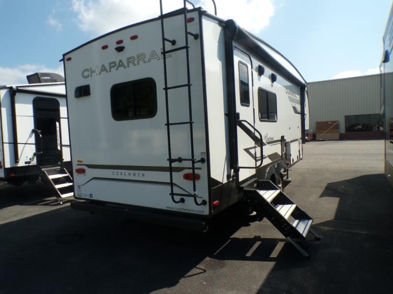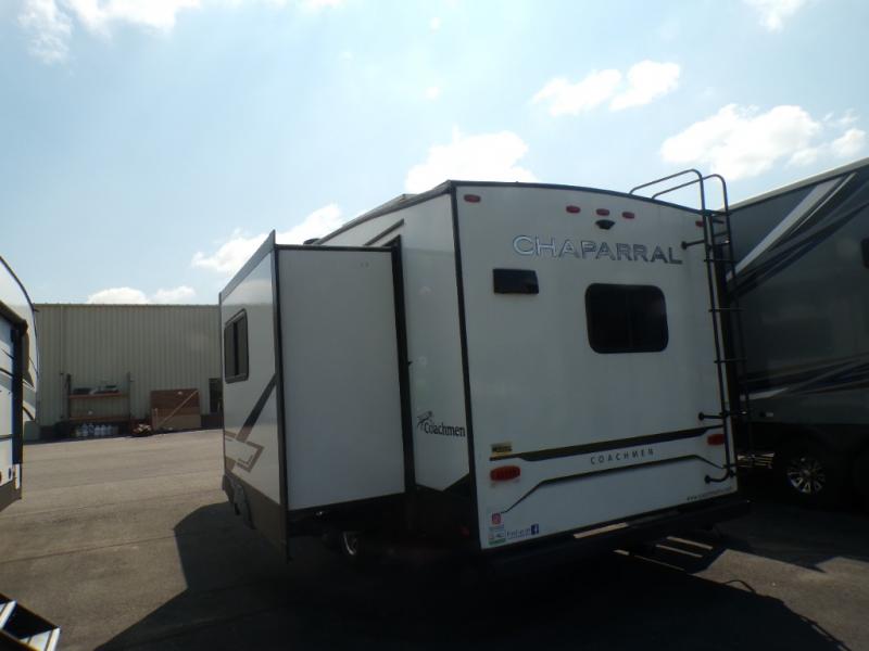 Comfort, convenience, and an easy haul is what you will find with each one of these Coachmen RV Chaparral Lite fifth wheels! Their Tri-Tex powder coated frame technology is up to 5X more weather resistant, and the dual-sided Azdel composite sidewall panels is ultra durable. The Road Armor suspension by Trail Air comes with heavy duty shackles and wet bolts so you can be sure it will hold up through every adventure, and you might want to add the exterior back-up and sideview camera prep for easy parking. You will feel right at home inside with a modern sound bar with a stereo, blackout roller night shades, Thomas Payne furniture, and many more comforts! The exterior is just as inviting with its electric awning with LED lights, Solid Step entry steps, and pass-through storage for all your gear!