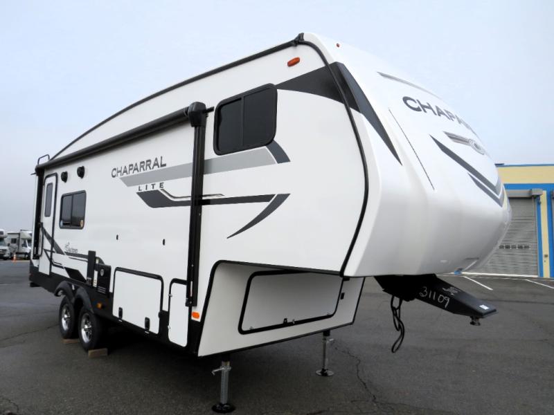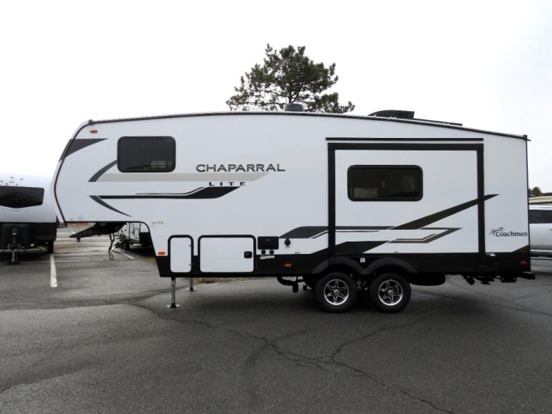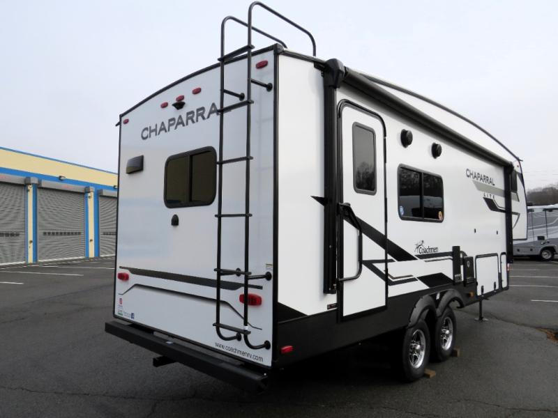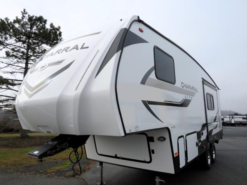 Comfort, convenience, and an easy haul is what you will find with each one of these Coachmen RV Chaparral Lite fifth wheels! Their Tri-Tex powder coated frame technology is up to 5X more weather resistant, and the dual-sided Azdel composite sidewall panels is ultra durable. The Road Armor suspension by Trail Air comes with heavy duty shackles and wet bolts so you can be sure it will hold up through every adventure, and you might want to add the exterior back-up and sideview camera prep for easy parking. You will feel right at home inside with a modern sound bar with a stereo, blackout roller night shades, Thomas Payne furniture, and many more comforts! The exterior is just as inviting with its electric awning with LED lights, Solid Step entry steps, and pass-through storage for all your gear!