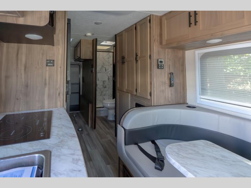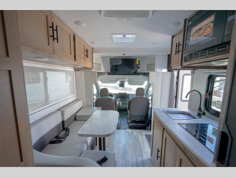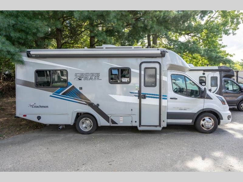 The Cross Trail EV Class C gas motorhomes by Coachmen offer livable and storage friendly coaches with an interior/exterior Smart TV, extra large kitchen counters, and large sliding tinted windows. Also included is the Renogy Empowered state-of-the-art hybrid electrical system designed to operate every coach function from battery power, including the A/C, and is convenient for operating systems while traveling without the use of a generator. Each has a fuel-friendly Ford transit chassis, Azdel composite vacuum bonded sidewalls, and a CrossFlex roof membrane, providing more puncture resistance. And the available all-wheel drive means you can go off the beaten path if you choose that option!