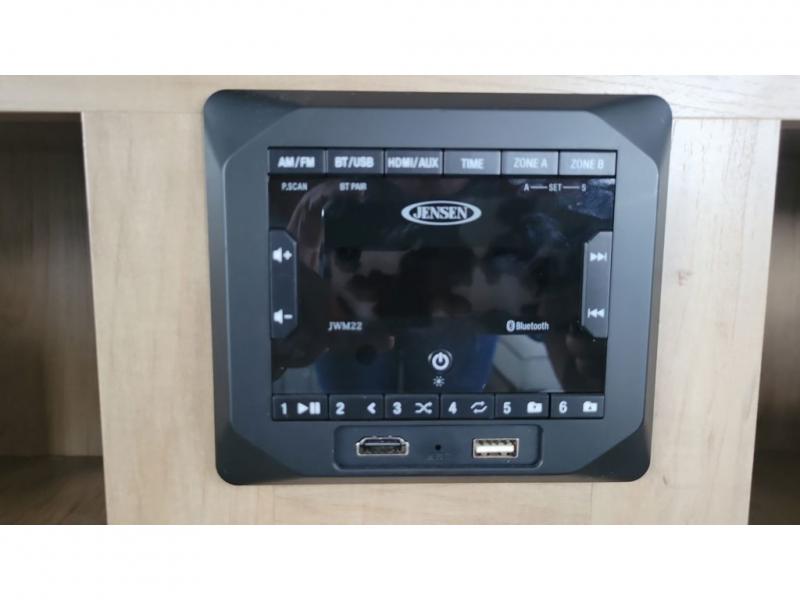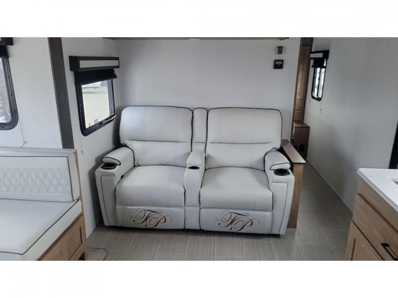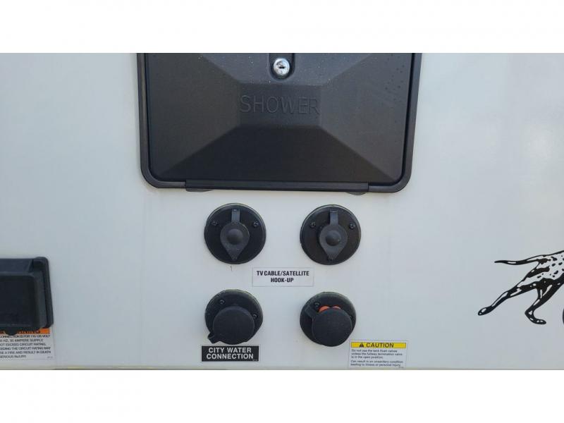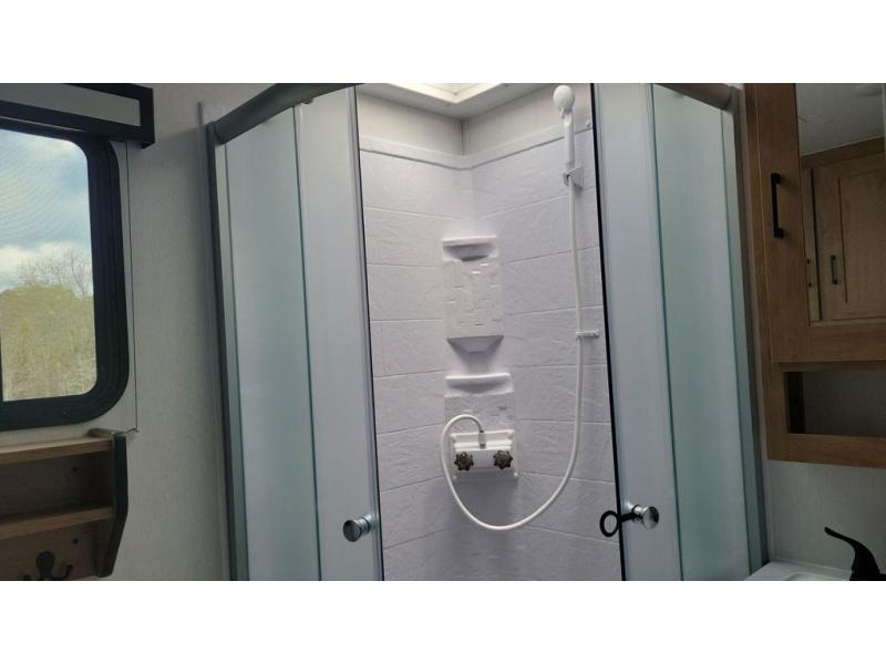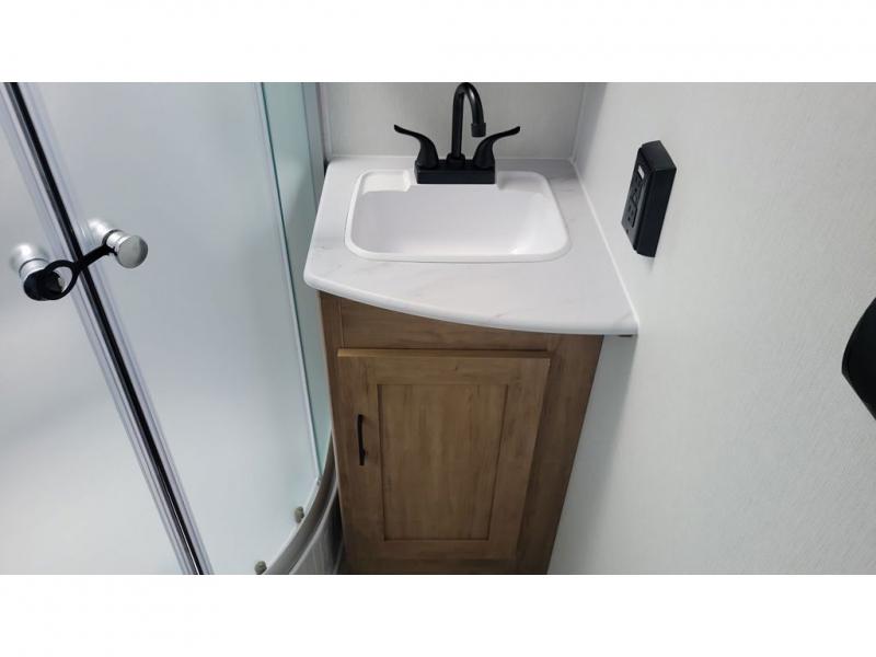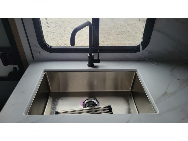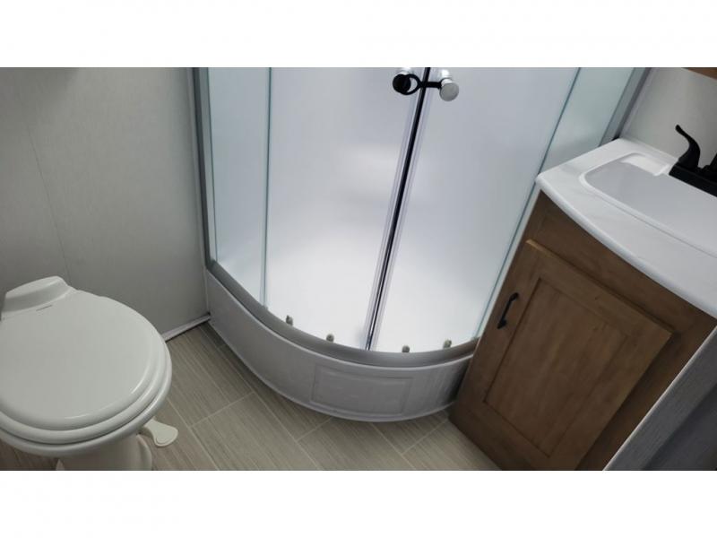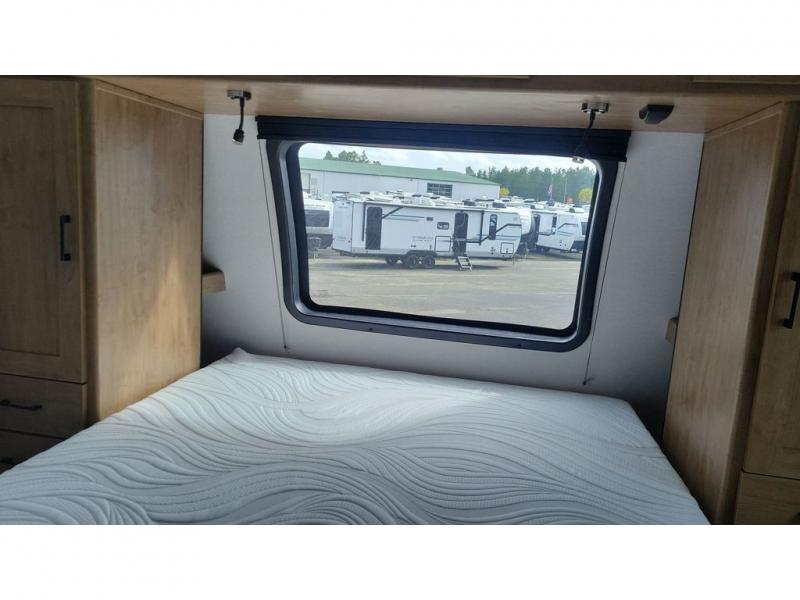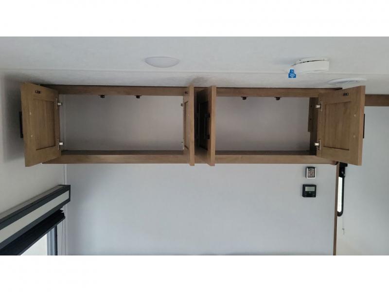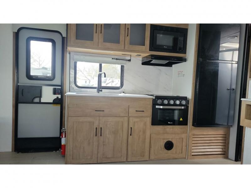 This travel trailer will feel just like home with its private bedroom and spacious full rear bath. You will appreciate the vaulted under-bed storage for extra blankets, shoes, and luggage, plus there are dual wardrobes on either side of the bed for your book and glasses. Get comfortable in the main living area on the sofa or at the booth dinette, or you can choose the optional theater seat or optional hide-a-bed sofa in place of the standard sofa. The chef of your group can prepare meals indoors or outdoors on the full camp kitchen, and check out the large 20' power awning with LED lights that will provide protection from the elements.