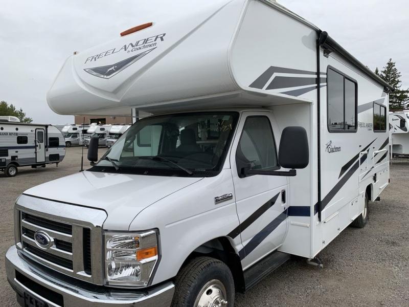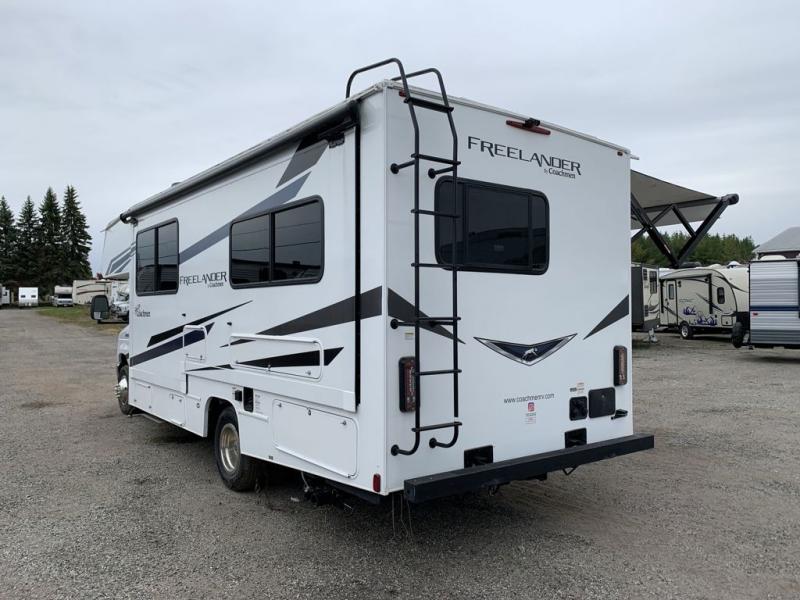 The Freelander Class C gas motorhome by Coachmen is a wonderful choice for anyone looking to get out on the road. A wide variety of floorplans and features offers something for everyone. The Azdel composite sidewalls and seamless one-piece roof membrane provide a solid structure to enjoy all your trips. Conveniences like storage above entrance door with an HDMI and charge station and reclining cockpit seats are standard, along with a rear color backup camera, a premium showerhead and faucet, and one-piece thermofoil countertops. The mandatory Explorer Package includes an exterior shower to rinse off before entering inside and an on-demand tankless water heater for hot water fast. Come find your favorite one today!
