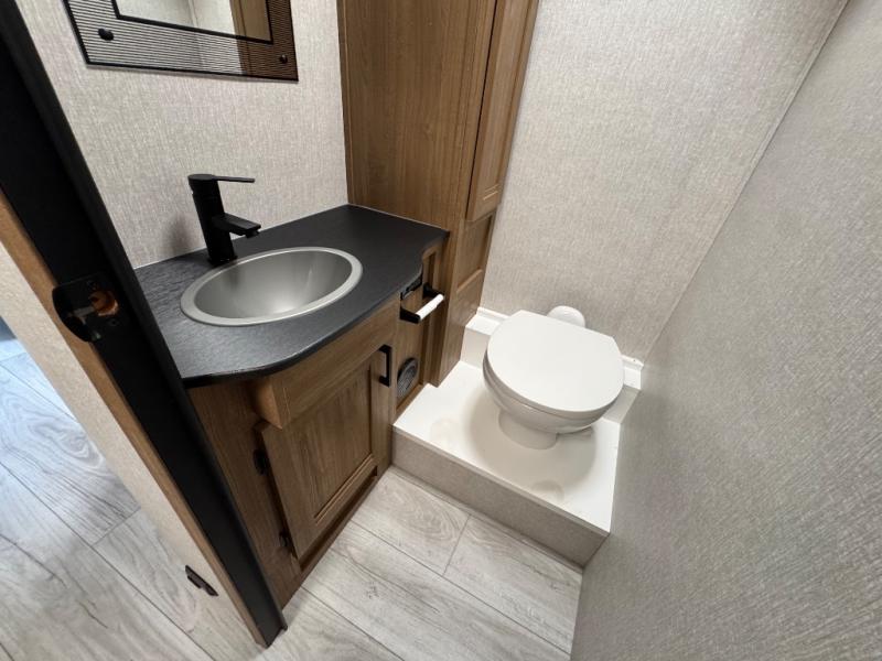 Have you been looking for privacy when sleeping and getting dressed in your next coach? This Leprechaun Class C gas motorhome offers a private rear bedroom with a walk-around queen bed, a bunk over the cab for the kids, and furniture that doubles as sleeping accommodations for guests. The private toilet and sink with the shower just across the hall allow two people to freshen up at once. Your family will love having a sofa and a booth dinette for relaxing, eating meals, playing games, or enjoying one another's company throughout your trip.