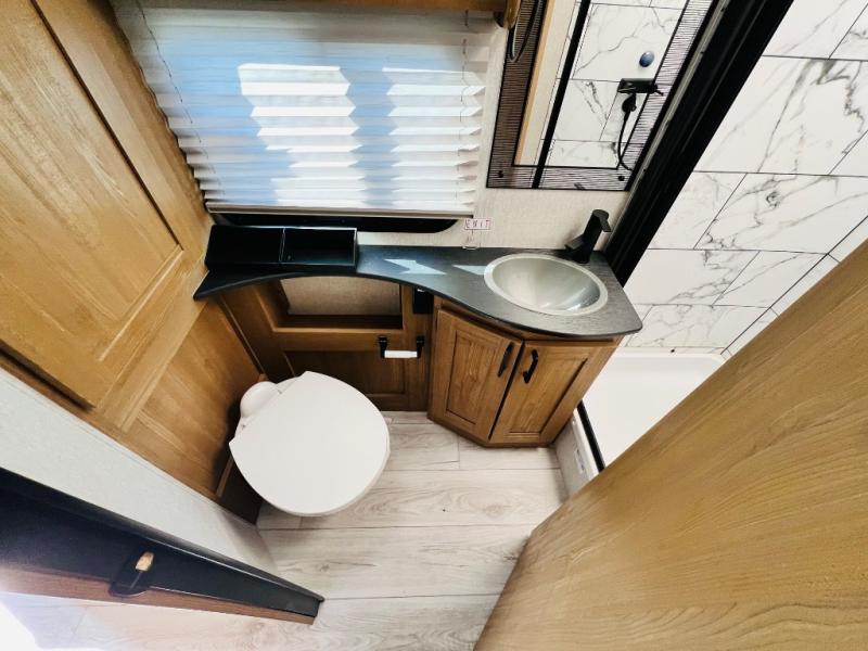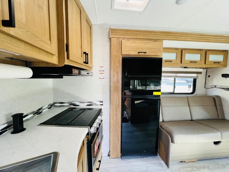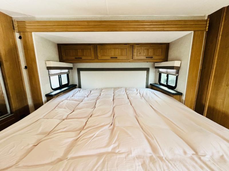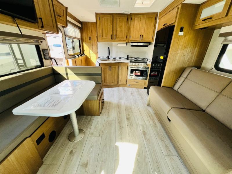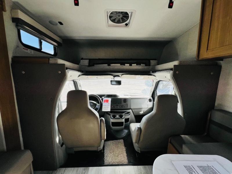 With each Leprechaun Class C gas motorhome by Coachmen you will enjoy "better" interior appointments, like the raised panel cabinetry, the one-piece thermofoil countertops, and the premium vinyl flooring. You will sleep soundly each night on the mattress with a bedspread, and staying clean will be easy with the premium showerhead and faucet in the bath. These models include reclining cockpit seats, cruise control, and a rear backup camera so you can easily get in and out of the campground. The Leprechaun is constructed with Azdel composite sidewalls, a seamless, one-piece roof membrane, and vacu-bond laminated walls, roof, and floor for a durable motorhome made to last.
