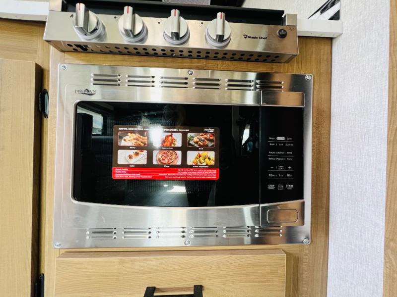 Take in the charm and style found on this Leprechaun Class C gas motorhome! The king bed slide is the perfect complement to the rear master suite, and the 44" x 76" J-lounge with 18" extension and 62" sofa are excellent additions to the living area. The kitchen has a three-burner cooktop with cover as well as a residential-size microwave oven for preparing easy meals. Take the party outside to the exterior entertainment center, or stay inside and watch the interior 40" TV.