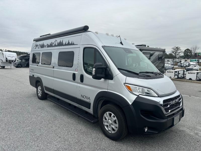 Each Nova Class B gas motorhome by Coachmen features Sumo Spring front and rear suspension for a smooth ride. Each unit is built on a Ram ProMaster 3500 chassis, and is powered by a 3.6L V6, 24 valve engine with 280 HP. You will appreciate the innovative Firefly multiplex system, the Sure Level tank sensors, and the 3 Group 31, 115AH AGM batteries for added power, as well as a new 24" LED Smart TV to help keep you entertained on long trips. Inside, you'll find solid hardwood cabinetry, a fiberglass shower verses the competitors ABS shower, a remote control MaxxAir fan with a rain sensor, and many more comforts to make you feel right at home. There is also a Truma Aventa 13,500 BTU A/C with three speeds, a dehumidifier, and night mode to ensure your comfort throughout each trip!