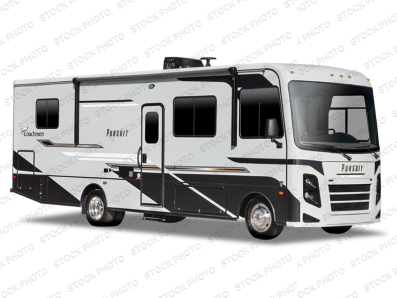 Pursue big dreams with one of these Coachmen RV Pursuit Class A gas motorhomes! The high gloss dove grey sidewalls with Azdel superlight composite, fiberglass front cap, and crowned, laminated TPO roof will hold up for years to come. A Ford F53 7.3L V8 engine propels your unit with an abundance of power to each destination. Stay warm in the cooler months with a 30,000 BTU furnace and stay cool in the warmer months with a single 15,000 BTU A/C or dual 15,000 BTU A/C units, depending on the model you choose. All of your extra gear can easily be stored in the spacious exterior storage compartments to keep from taking up space on the inside. The exterior propane hook-up will come in handy and some models even have an outside entertainment center with a TV. Come find the right one for you today!