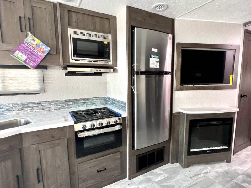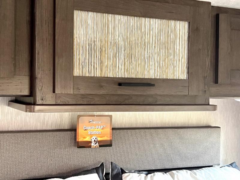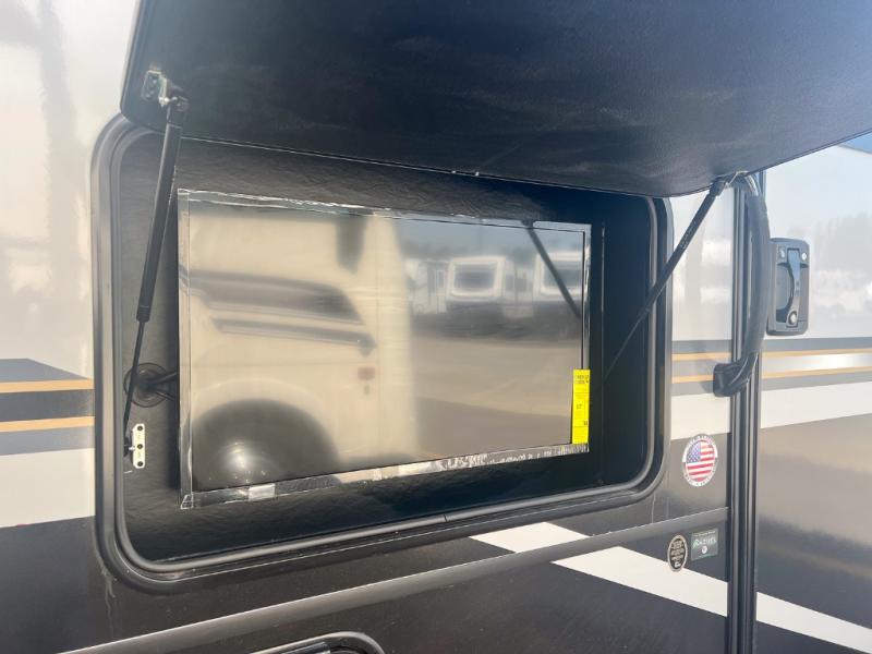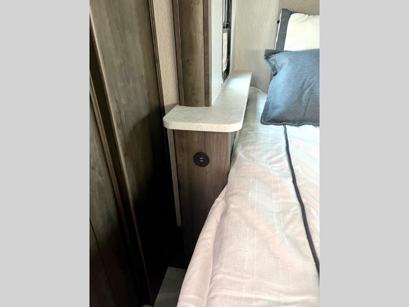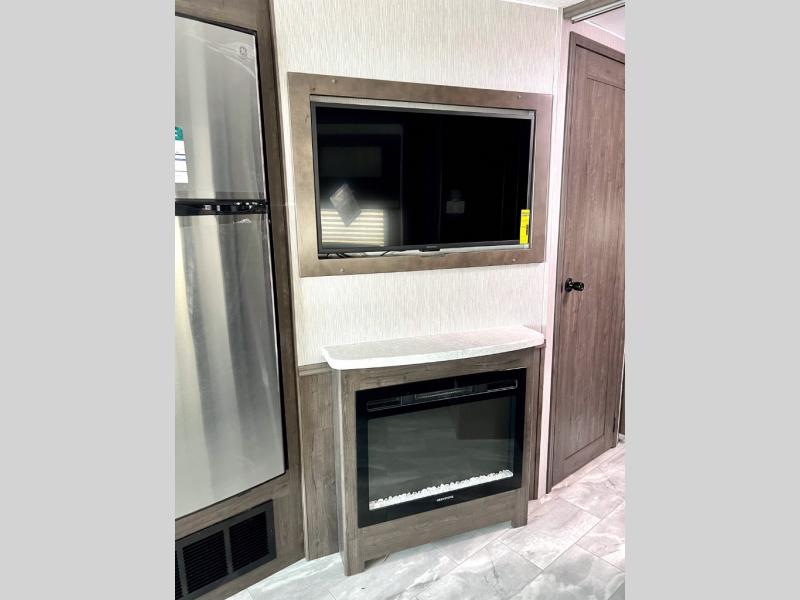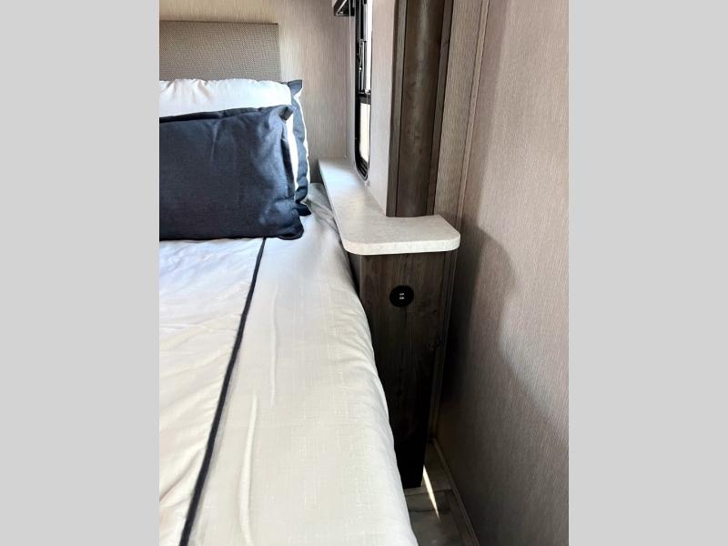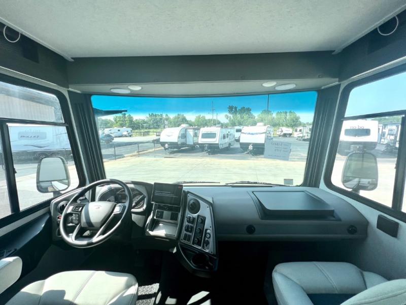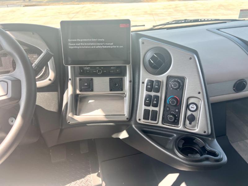 Enjoy a home away from home with this motorhome! The drop-down bunk over cab provides an extra sleeping space but can be stored away when not needed. Prepare your best home cooked meals while on the road with the stainless steel three burner cooktop and 12V stainless steel double door 10 cu. ft. refrigerator then enjoy them at the 42" x 72" booth dinette. Relax in true comfort on the 68" theater sofa across from the Smart TV and fireplace. After a long day of traveling, you can freshen up in the 26" x 38" shower while another uses the private toilet and sink. The rear private bedroom has a 72" x 76" king bed slide with a CPAP station above it and across from it there is a wardrobe, an LED TV, storage space, and washer and dryer prep!