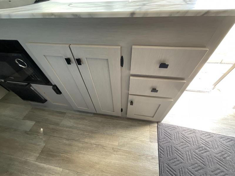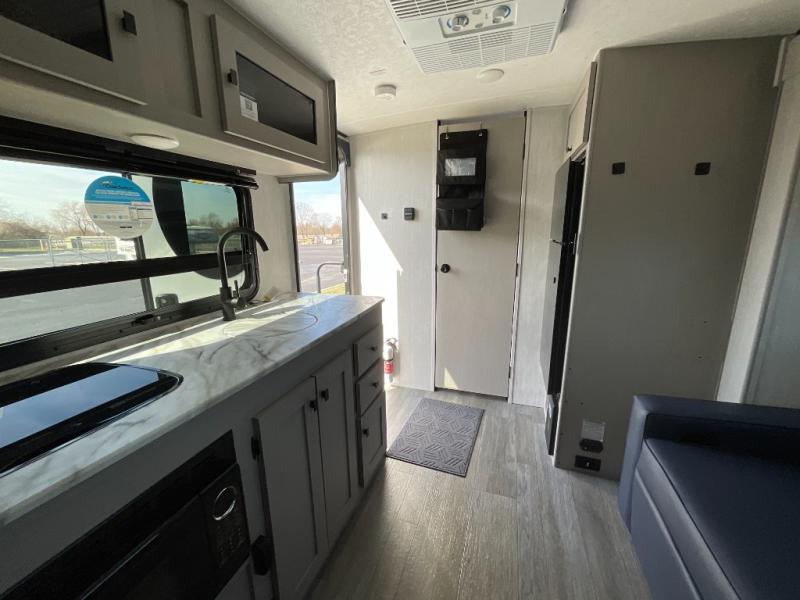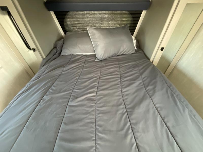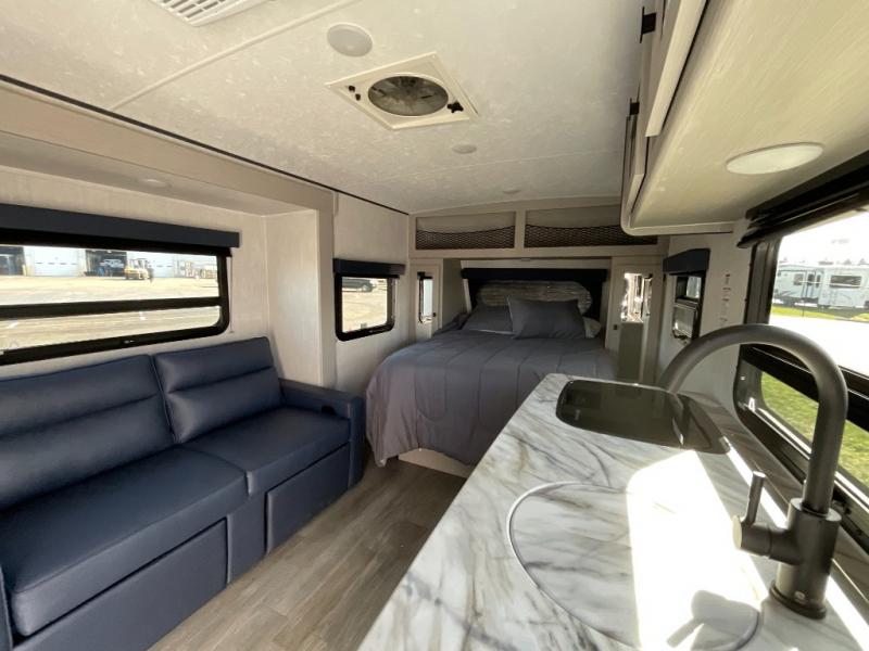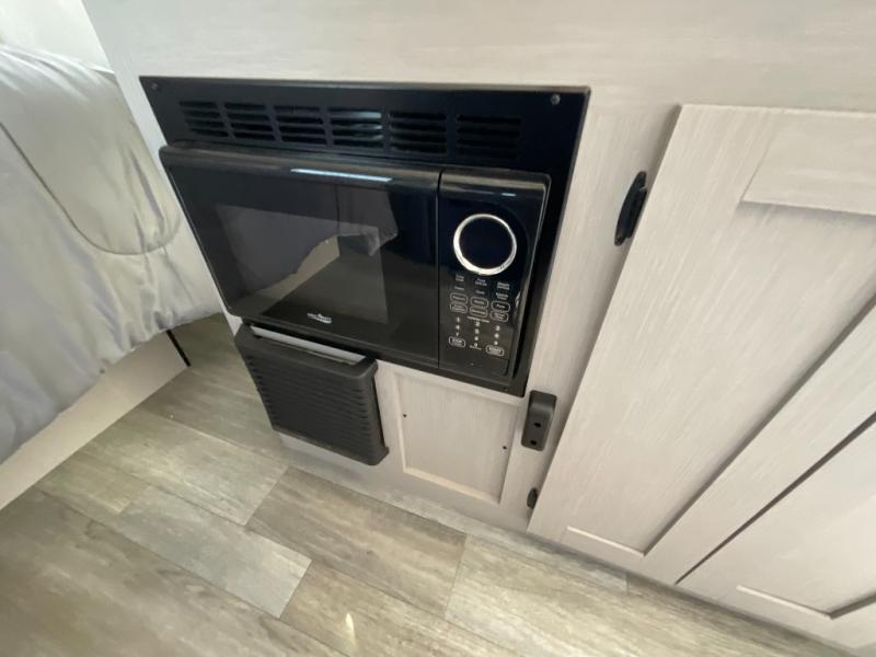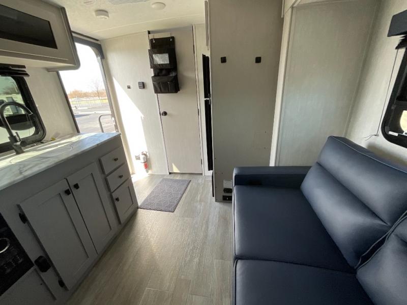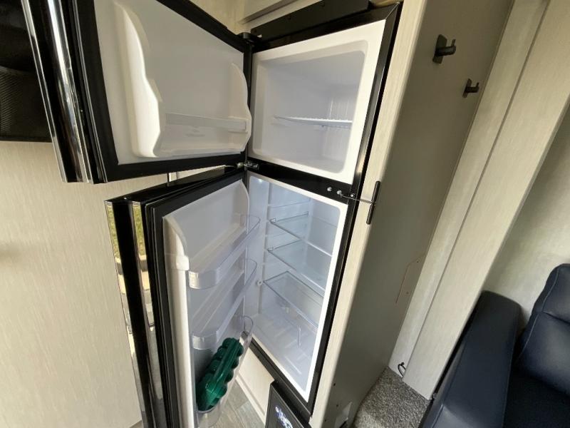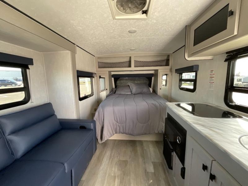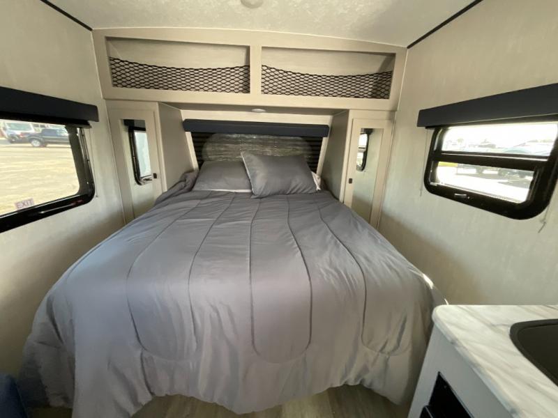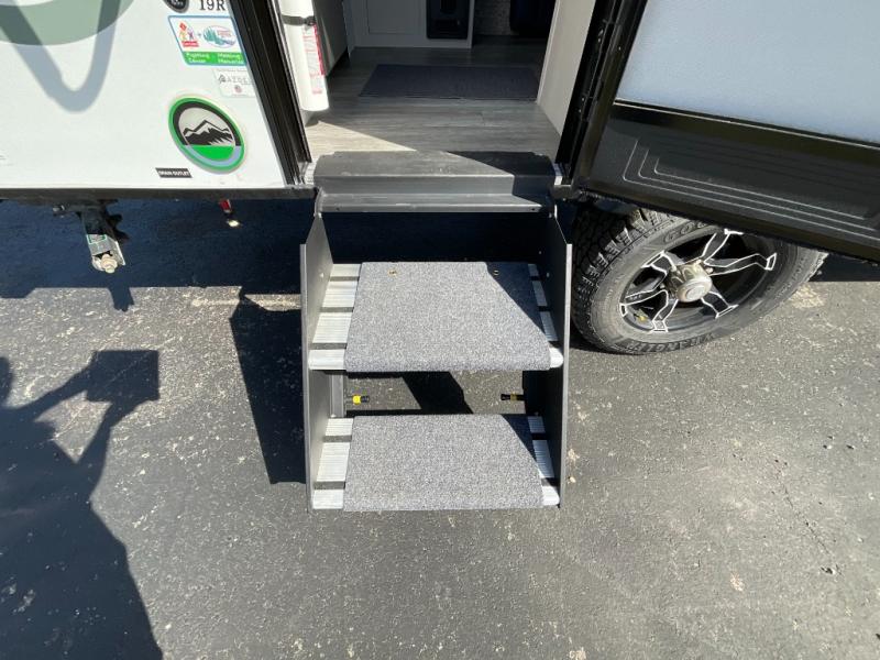 Step inside and discover a smartly designed interior that maximizes space and functionality. The 19R features a comfortable sleeping area, a fully equipped kitchen with a two-burner stovetop, microwave, and refrigerator, and a convenient bathroom with shower. The open layout creates a bright, welcoming living space, while storage compartments throughout the trailer ensure you can bring all your essentials along for the journey. Its compact size makes it easy to maneuver, tow, and park, whether you’re exploring campgrounds, state parks, or off-the-beaten-path destinations.