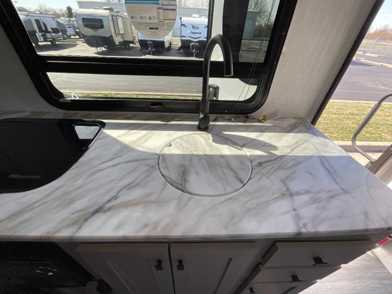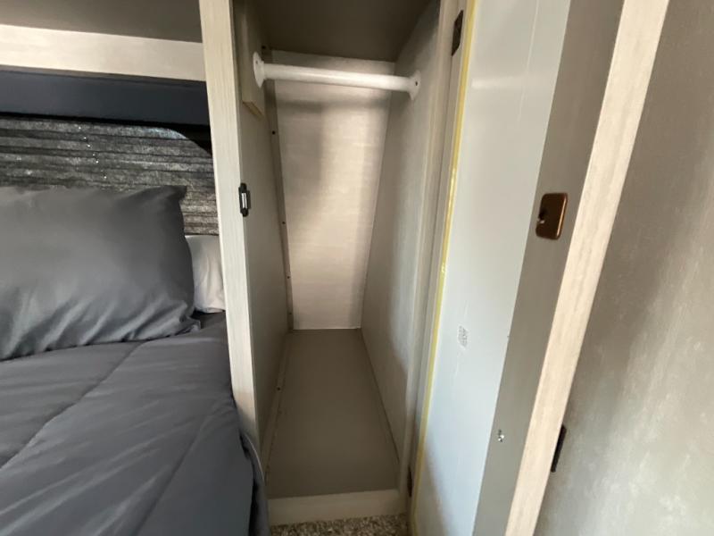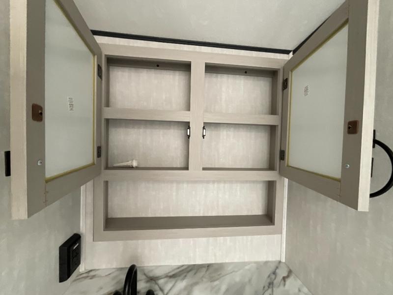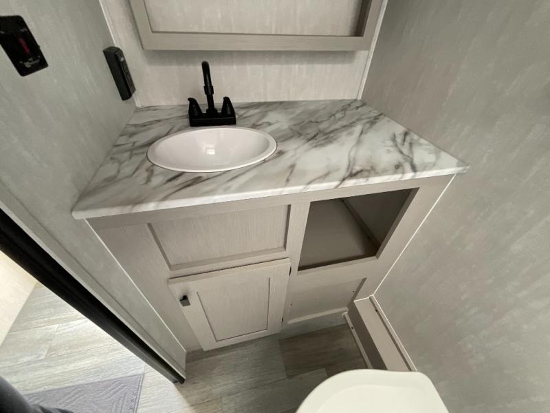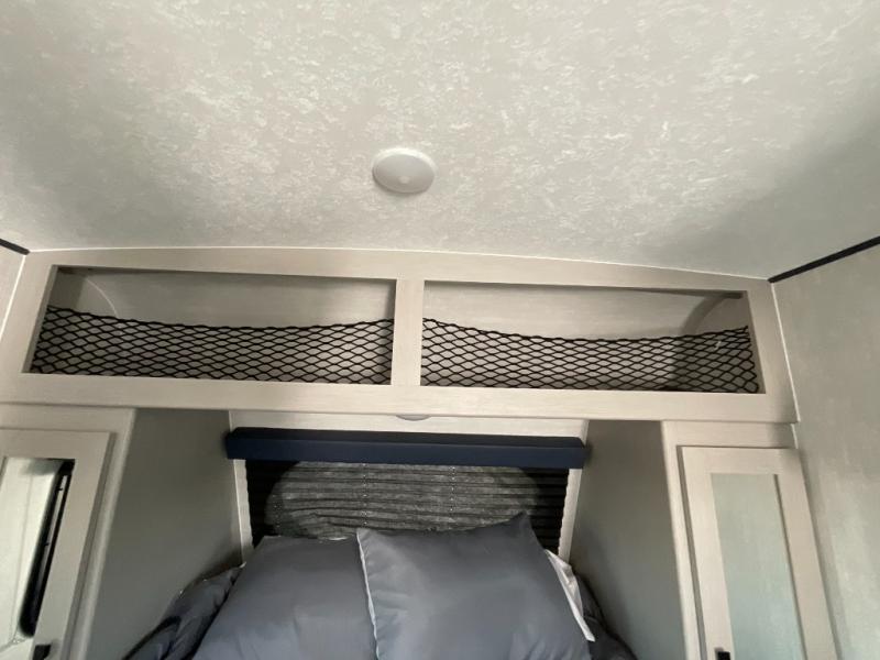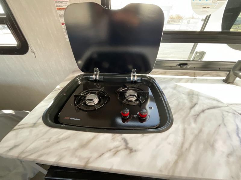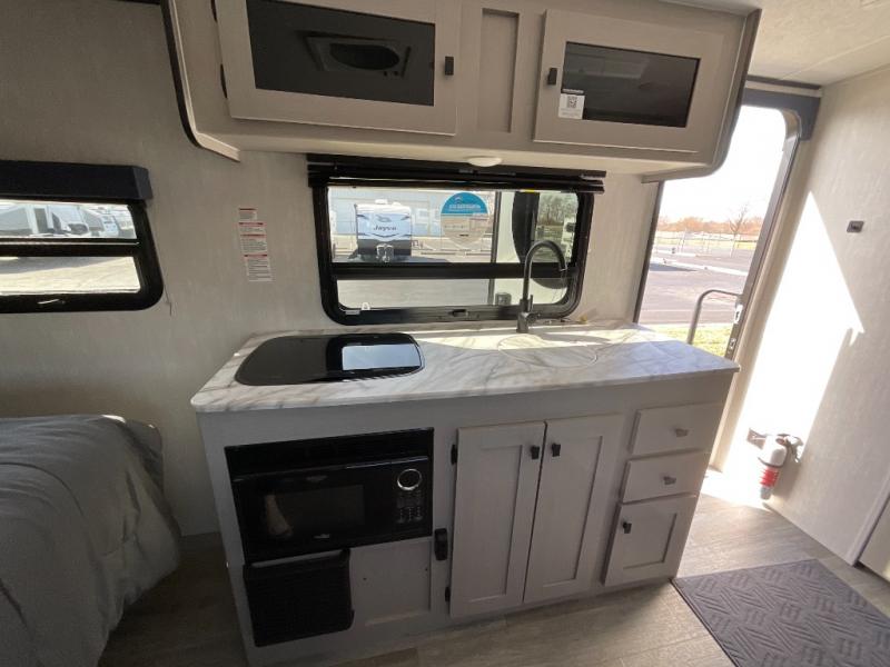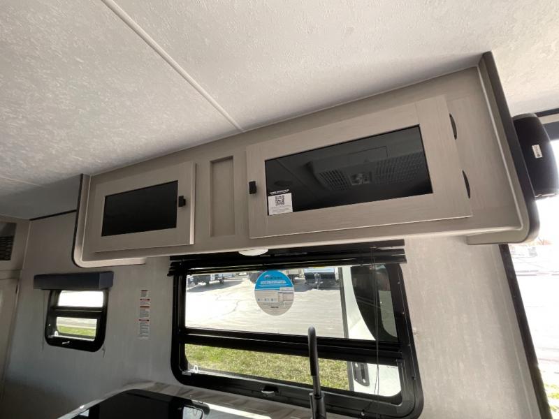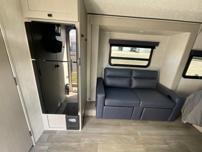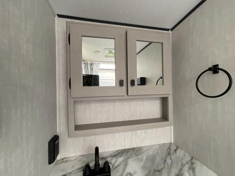 Step inside and discover a smartly designed interior that maximizes space and functionality. The 19R features a comfortable sleeping area, a fully equipped kitchen with a two-burner stovetop, microwave, and refrigerator, and a convenient bathroom with shower. The open layout creates a bright, welcoming living space, while storage compartments throughout the trailer ensure you can bring all your essentials along for the journey. Its compact size makes it easy to maneuver, tow, and park, whether you’re exploring campgrounds, state parks, or off-the-beaten-path destinations.