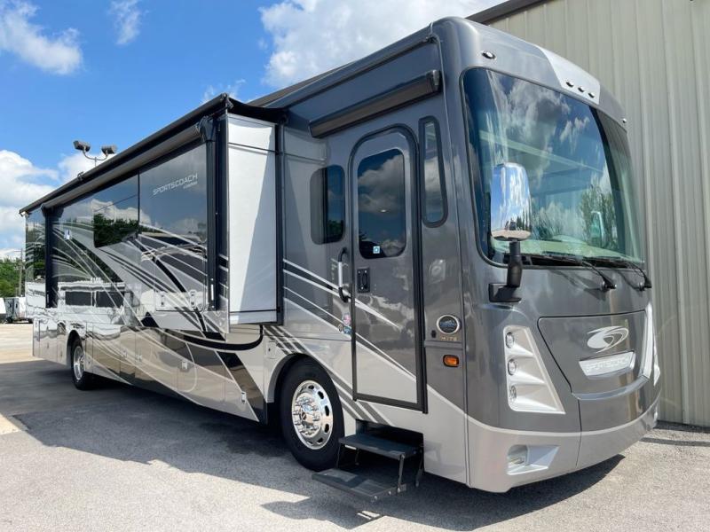 Start exploring new places with friends and family in one of these Coachmen RV Sportscoach RD Class A diesel motorhomes! They are built on a raised rail Freightliner chassis and powered by an ISB Cummins rear diesel engine with 360HP. The high gloss gel coat sidewalls come with Azdel superlite composite to not only keep your unit at a lighter weight, but also to keep it from rotting away. Enjoy panoramic views of your beautiful surroundings with the frameless tinted windows and the ease of getting into bed now with the true flat floor bedroom design eliminating unnecessary climbing over the engine cover. The chassis air suspension and air brakes provide a smooth ride to each destination, and the charging station inside will keep your electronics at 100% for your trips. Come find the one that best suits your needs today!