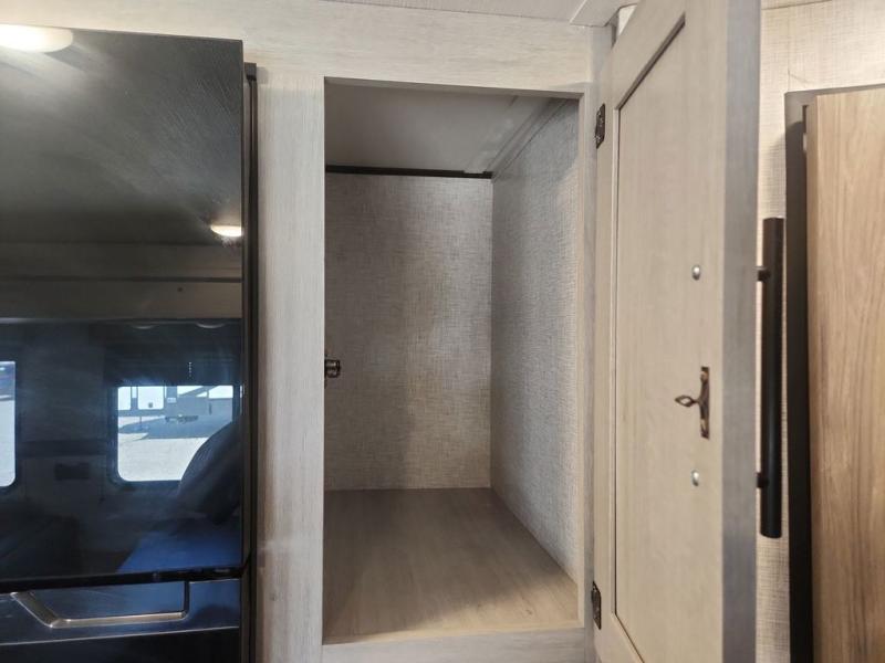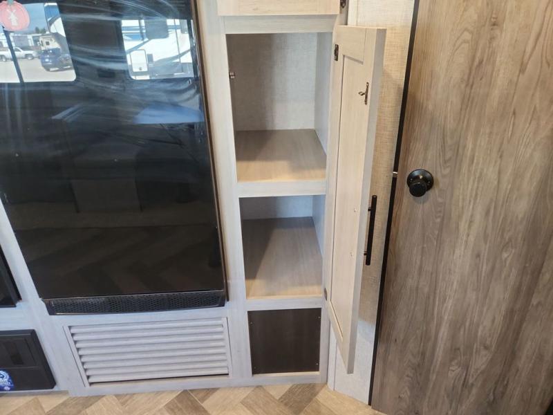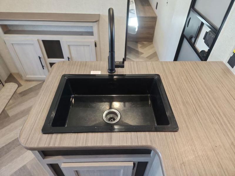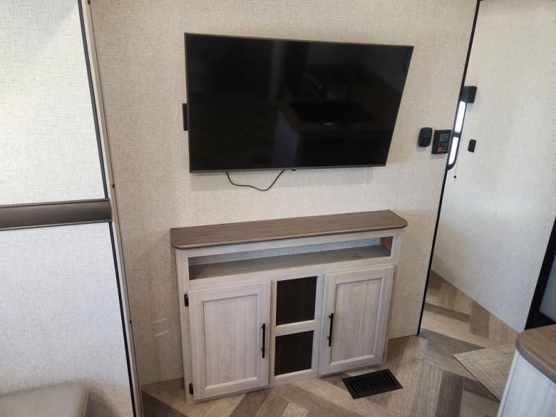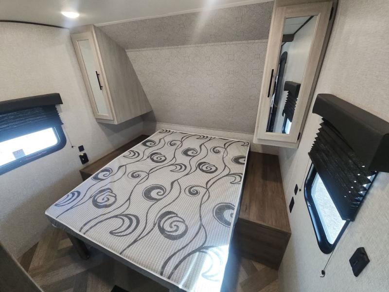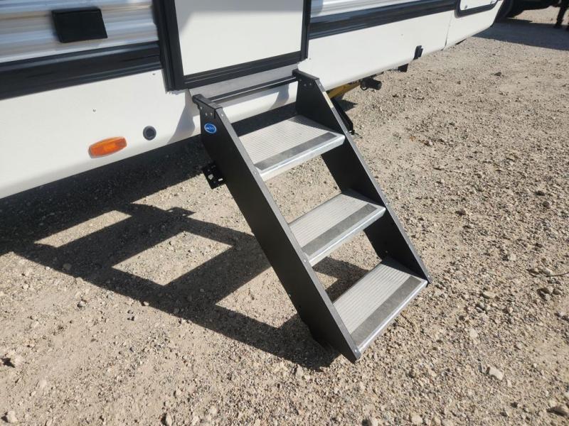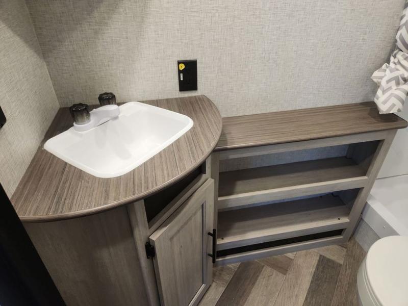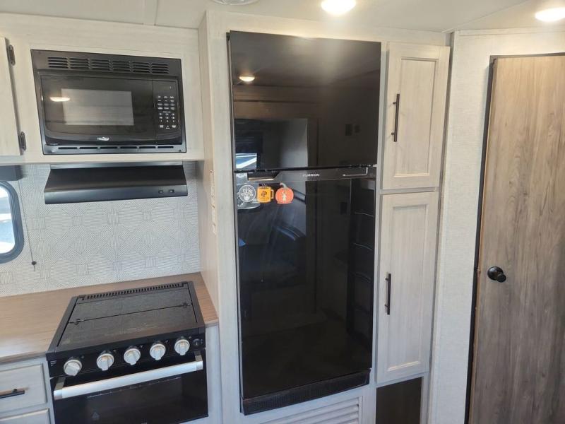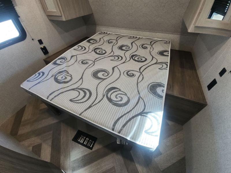If you've been searching for a travel trailer that can sleep more campers and give you more interior space, this is the one! There are double-size bunks with a ladder for the little ones, an RV queen bed in the front bedroom, plus a jackknife sofa and booth dinette that will double as seating and sleeping space. You will be able to make home cooked meals for your crew since there is a three burner range with a glass top and LED lit knobs, and the 10 cu. ft. 12V refrigerator can keep your food fresh. This model also includes a full bath with a 30" x 36 shower, a foot flush toilet, and a medicine cabinet to keep items organized.