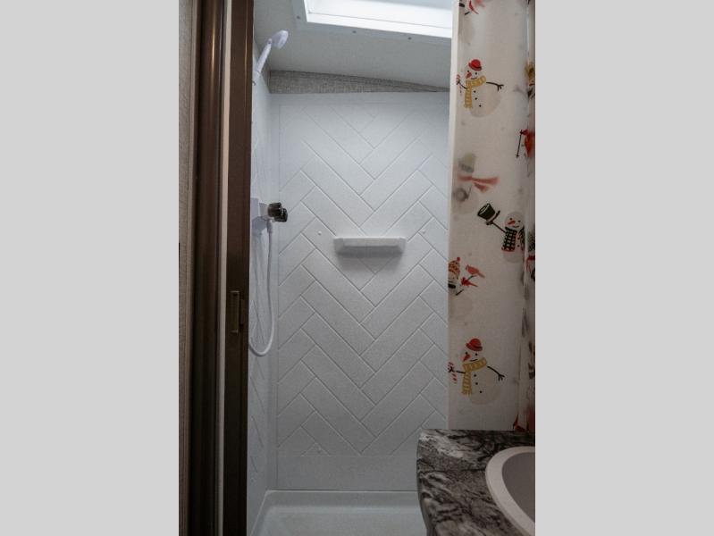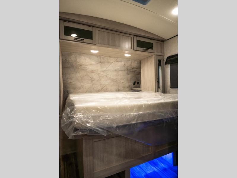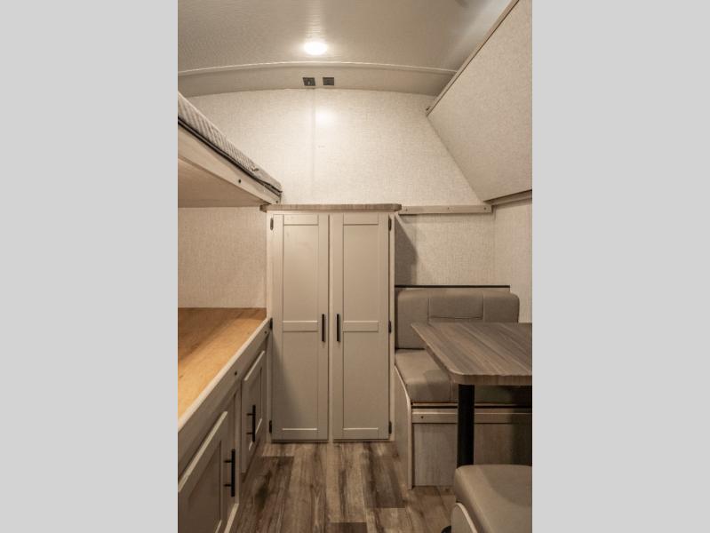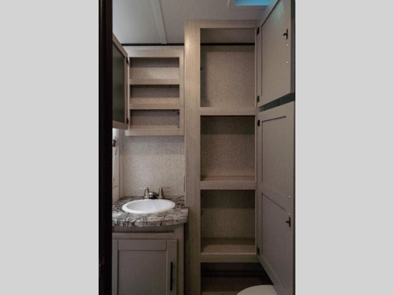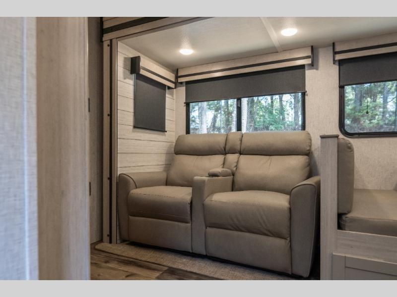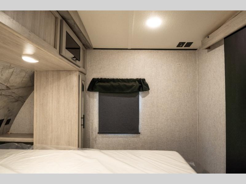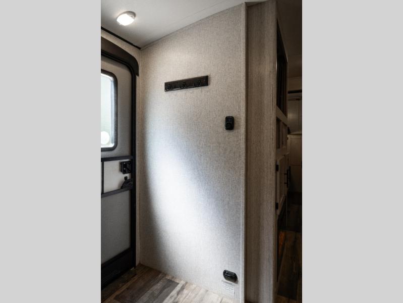 Everyone will have a great time camping in this travel trailer! There is a rear private bunkhouse with a 60" fold-up sofa below a 28" x 64" flip-up bunk, a set of 28" x 74" bunk beds, and a wardrobe to the outside kitchen which even has a refrigerator to keep your beverage cold while you cook. There is also a front private bedroom with a king bed that has wardrobes on either side and an overhead cabinet above it to store your items. The kids can even bring a friend or two along to sleep on the 80" x 42" XL booth dinette and the tri-fold sofa. The full bathroom has a 30" x 36" shower and a linen closet so everyone can stay squeaky clean!
