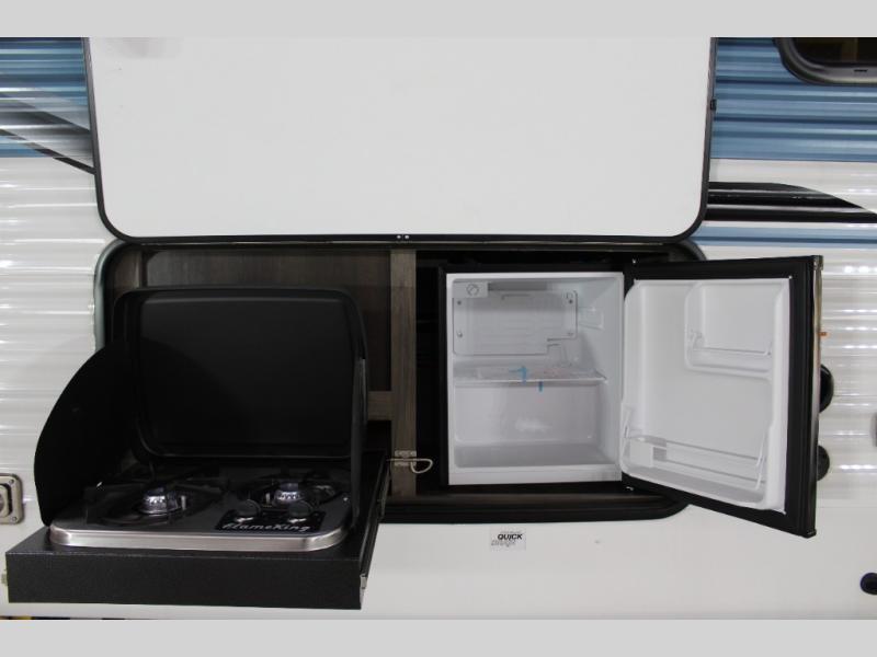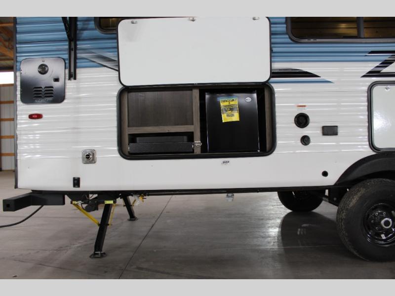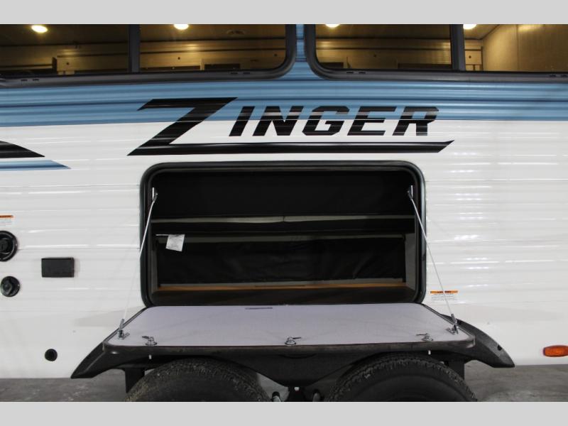 Lead your family to a great vacation getaway in any one of these CrossRoads RV Zinger travel trailers! They come with a fully enclosed underbelly with forced heat (varies by model) so that you can head to your favorite spot no matter what mother nature throws your way. The outside hot/cold shower will help keep mud from being tracked inside, and the Keyed-A-Like lock system will give you peace of mind at night or while you're away from the trailer. With an aerodynamic front end, you will get better gas mileage, and crank up the tunes with the outside speakers with LED accents. Start making memories in one of these models today!