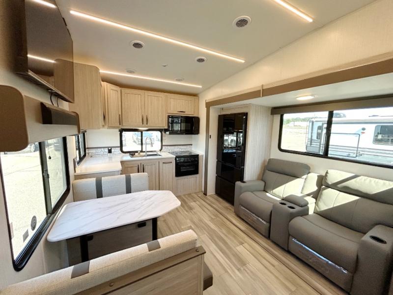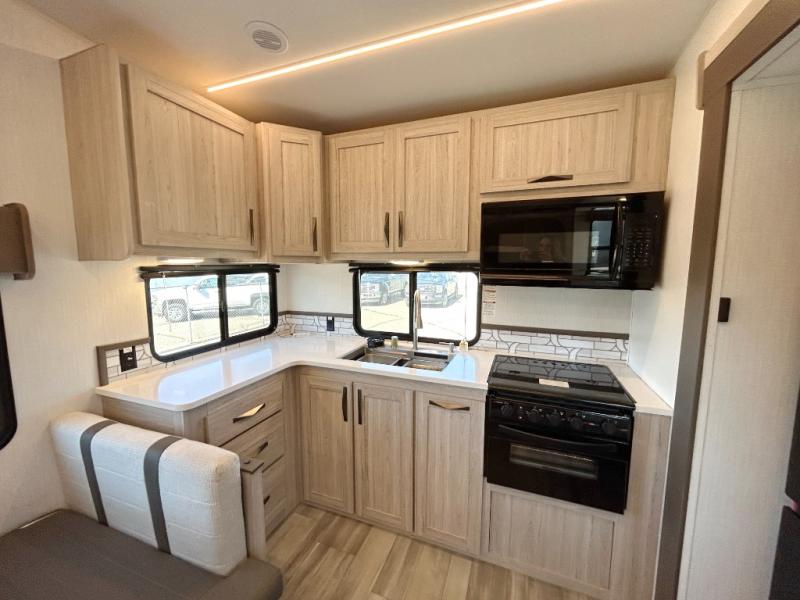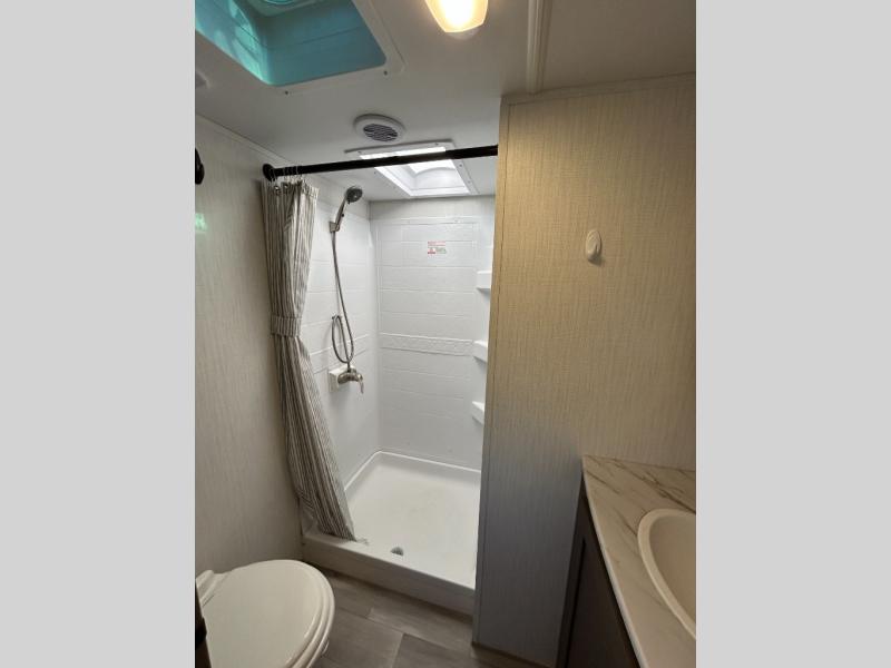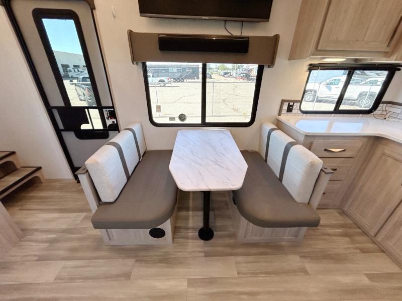 Every one of these Cruiser Essence fifth wheels offer an unrivaled experience on the road! Their sturdy construction consists of Azdel Onboard composite panels, a five-sided aluminum super structure, and tongue and groove plywood throughout, plus a painted fiberglass front cap that will turn heads at the campsite. Their interiors have a keen sense of comfort and convenience with features like a residential workstation sink with waterfall faucet, an air fryer oven, and solid surface kitchen countertops. You will enjoy having hot water quick for your shower in the upgraded shower surround thanks to the on demand water heater. The tinted G20 windows give you privacy from the outdoors while offering you a view of your beautiful scenery. Get your hands on one today!