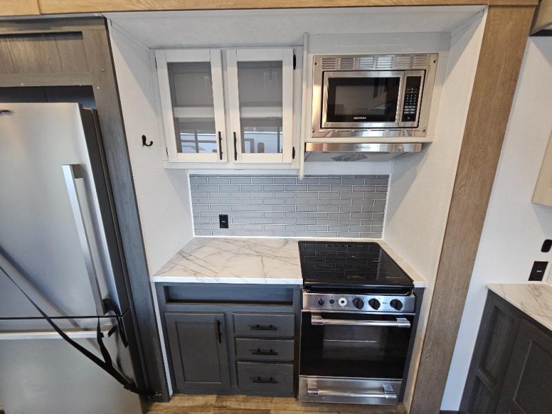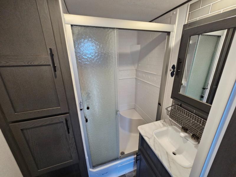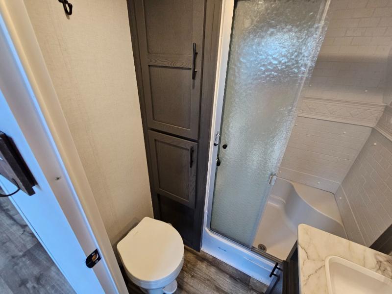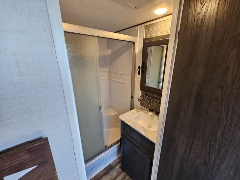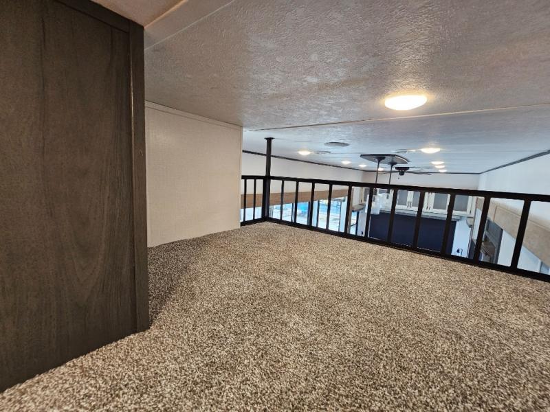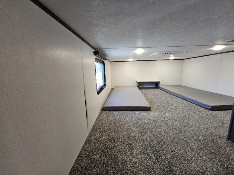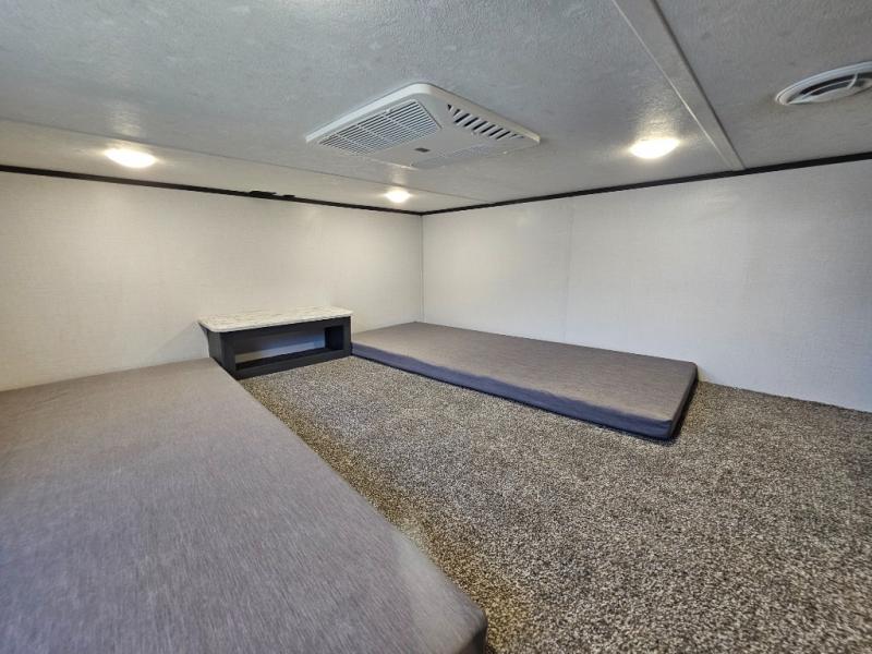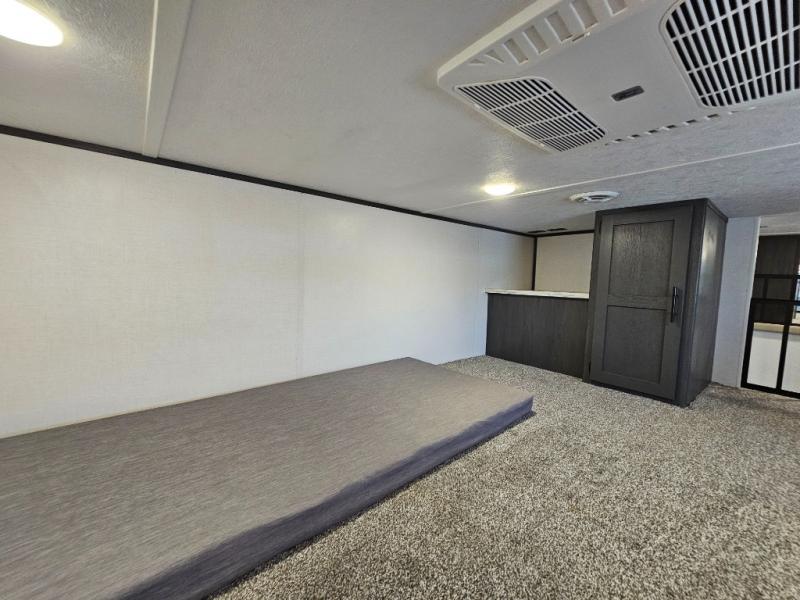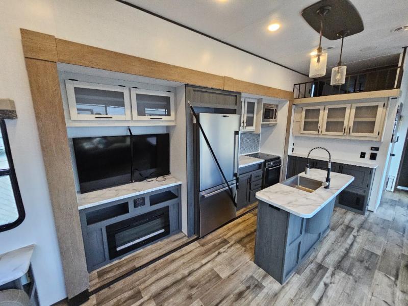 Head off to your favorite locations in this destination trailer that can sleep seven people each night. Whether you're relaxing in the rear living room, dining at the free-standing dinette, or prepping dinner at the kitchen island, you're sure to love every minute in this trailer. There is also an entertainment center with an HD LED TV for movie nights and a fireplace to make your space feel more like home. A full bath, complete with a large linen closet and shower with a seat will let you freshen up before bed, and the loft area with three beds will be perfect for kids, guests, or storage space! You'll find the front private bedroom to be ultra accommodating with its king bed slide out, wrap-around counter space, plus washer and dyer prep!
