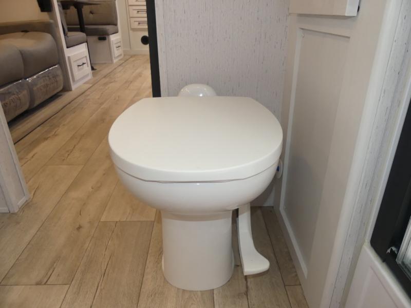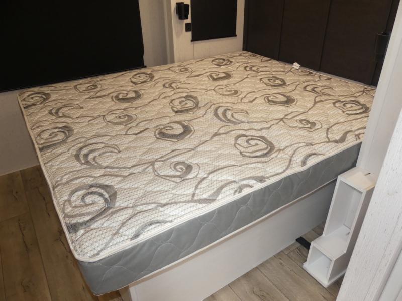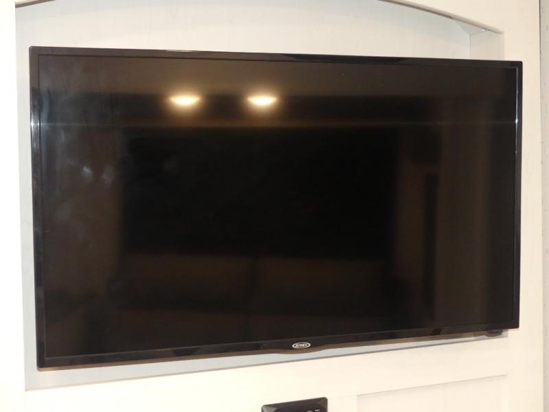 You will have everything you need for a comfortable camping trip with this travel trailer! It features a rear private bedroom with a king bed slide for more interior space and an entrance into the walk-through bathroom which will come in handy at night. The bathroom also has a dual sink vanity for two to get ready at once in the mornings. The front kitchen has plenty of countertop space to prepare your best meals and even a pull out trash can, and you can comfortably enjoy them at the U-shaped dinette, plus it can transform into an extra sleeping space for a guest or two to tag along. What better way to relax at night than on the tri-fold sofa across from the hinged entertainment center!