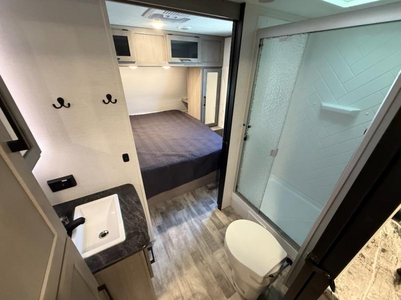 Each Kodiak Ultra-Lite travel trailer by Dutchmen includes an enclosed underbelly, aluminum framing, and bear cage construction for a lightweight, yet durable RV. The HyperDeck flooring is another construction feature that is ultra durable. Head indoors to find seamless countertops, roller night shades, and no carpet for easier cleaning. These travel trailers come with a power tongue jack and power stabilizer jacks for easy set-up, and easy lube axles to ensure smooth towing. The on-demand tankless water heater, adjustable power awning with LED lights, central command center, and upgraded graphics package are just a few more stand-out features you are sure to enjoy!