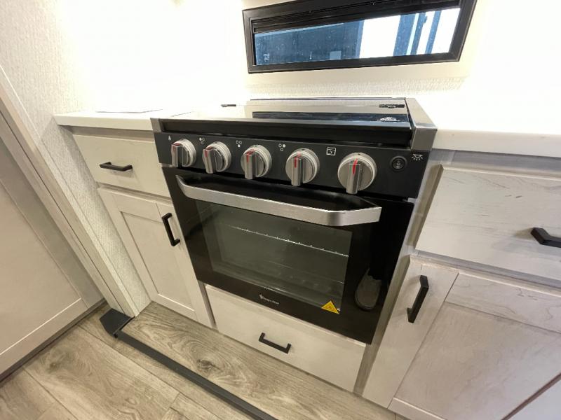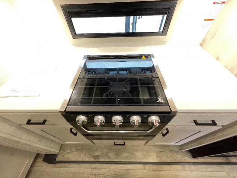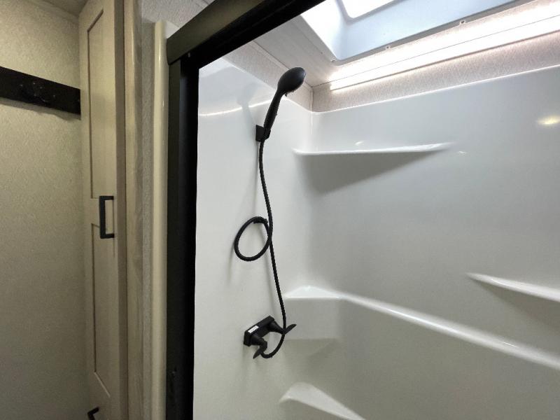 With any Blackthorn mid-profile fifth wheel by EAST TO WEST, you will find luxury amenities at every turn! There is Radiant Technology Composites insulation in the roof, front cap and underbelly, plus Azdel laminated sidewalls with block foam insulation for 4-seasons camping! You will love how easy it will be to tow your fifth wheel with Dexter axles and a MORryde CRE 3000 suspension, and the electric automatic leveling system means you can set up camp in no-time! The exterior also includes an adjustable power awning with LED lights, LED motion sensor lights in the pass-through storage, and a universal all-in-one docking station to easily manage your units tank levels and functions. Head inside to find vinyl flooring, solid wood shaker style cabinet doors with hidden hinges, a seamless fiberglass shower with the industry's first locking travel latch for glass shower doors, and many more elegant features!