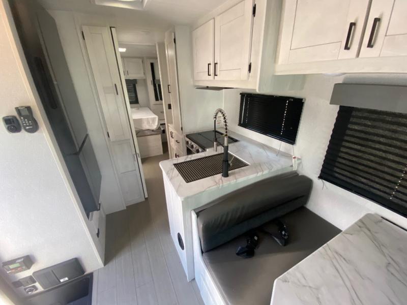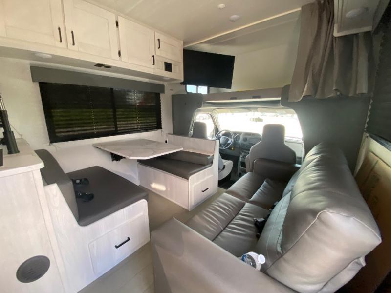 With any Entrada Class C gas motorhome from EAST TO WEST, the construction consists of a completely laminated coach, a one-piece molded fiberglass front cap, 2" thick sidewalls with Azdel composite exterior, a Dicor Diflex ll TPO roof, and integrated entry step. Some of the Entrada value package features include 12V tank heaters to camp during the cooler months, the Winegard Air 360+, plus backup and sideview cameras with monitor for safety on and off the road. The interior offers a 7-foot interior height for a spacious feel, and hardwood shaker style cabinets. Choose an Entrada for its tasteful design, attention to detail, bright interior and/or affordable price-point!