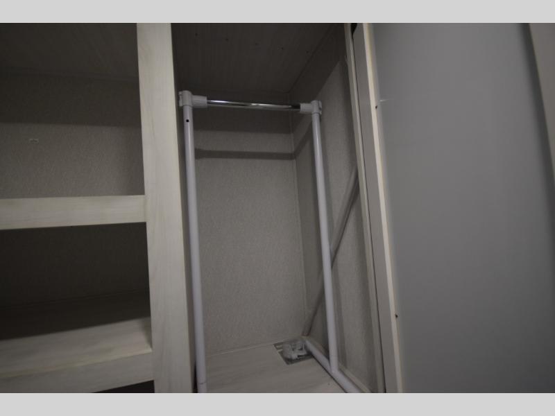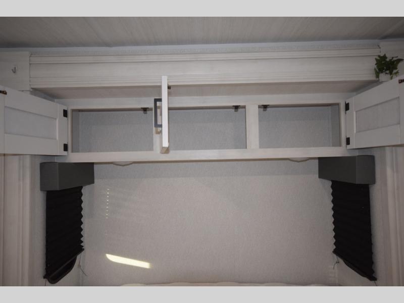 The private rear bedroom boasts a queen-size bed on its own slide, giving you room to relax. Two large wardrobes and a linen closet flank the entertainment-ready wall, so there's no shortage of storage for your travel essentials.