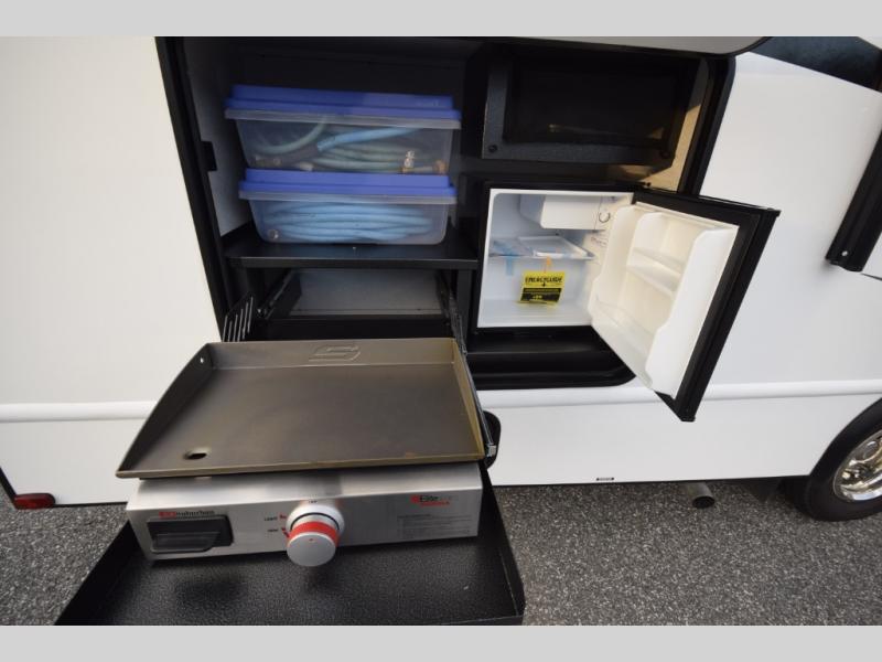 Take your camping experience outside with the built-in outdoor grill and refrigerator, perfect for sunny afternoons and fireside dinners.