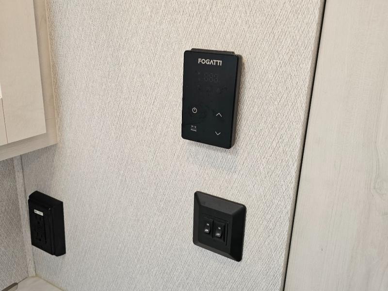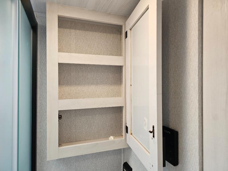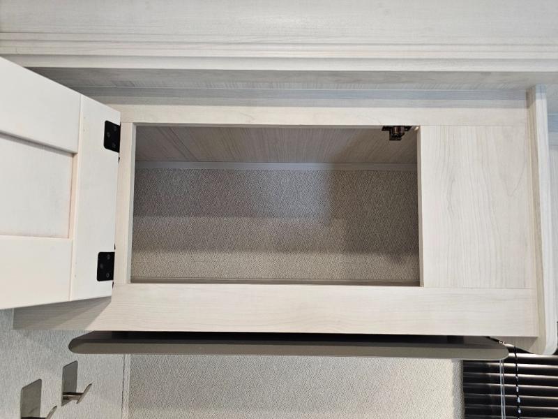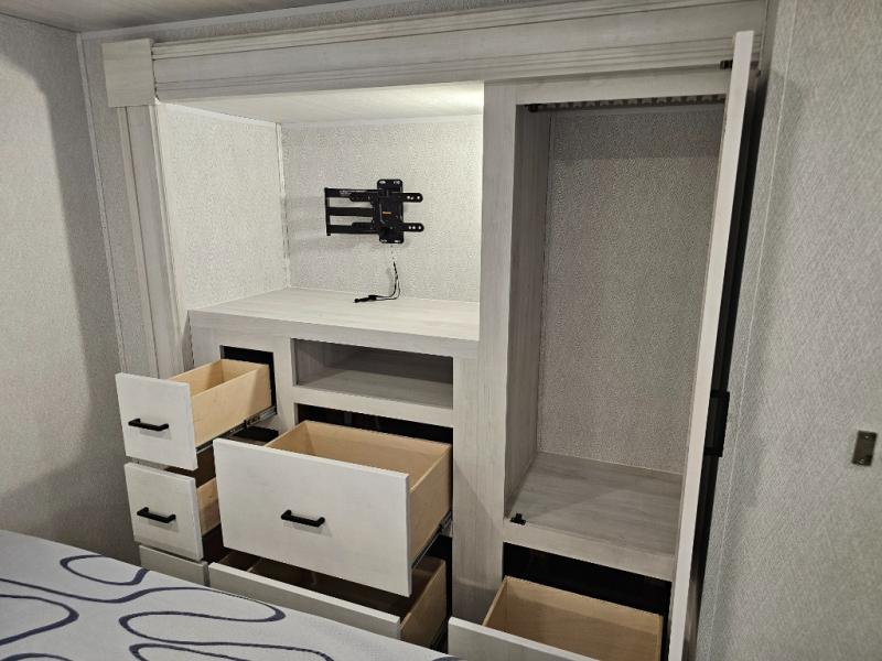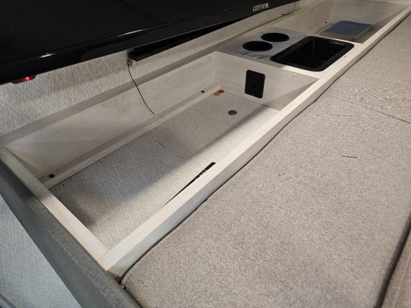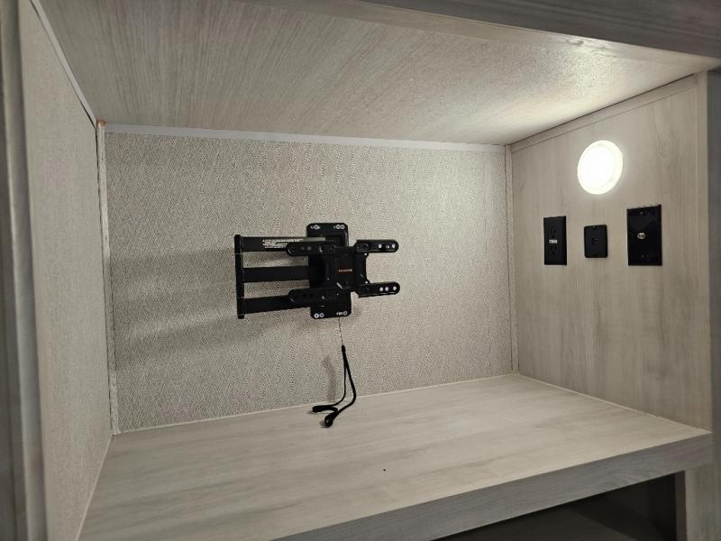 Prep area for an optional bedroom TV to enhance relaxation on the road.