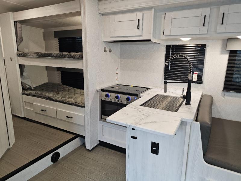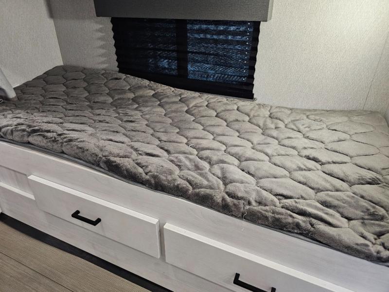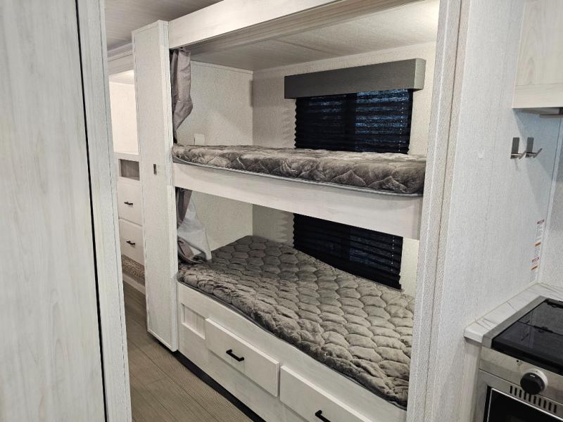 Bunk beds on the slideout for kids, guests, or extra storage versatility.